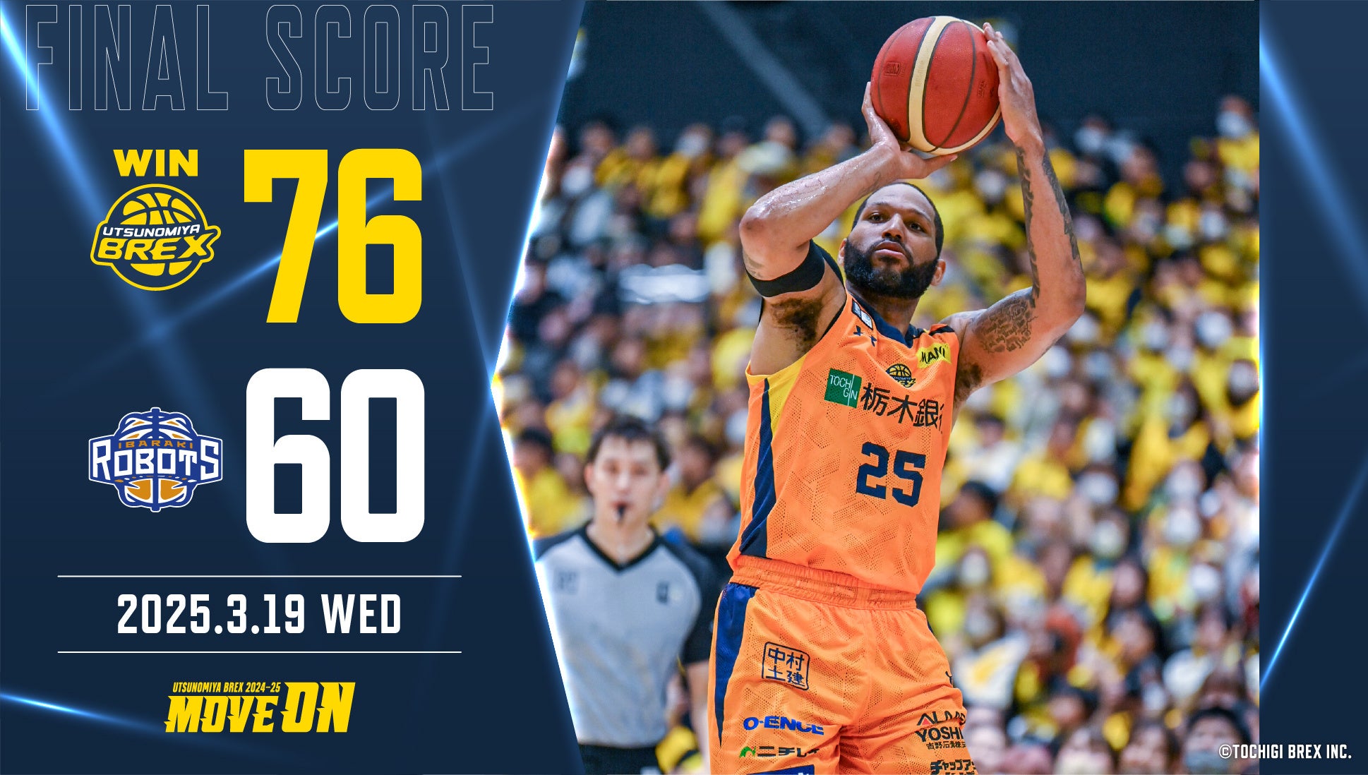 宇都宮ブレックスは、2025年3月19日(水)に日環アリーナ栃木で茨城ロボッツと対戦しました。