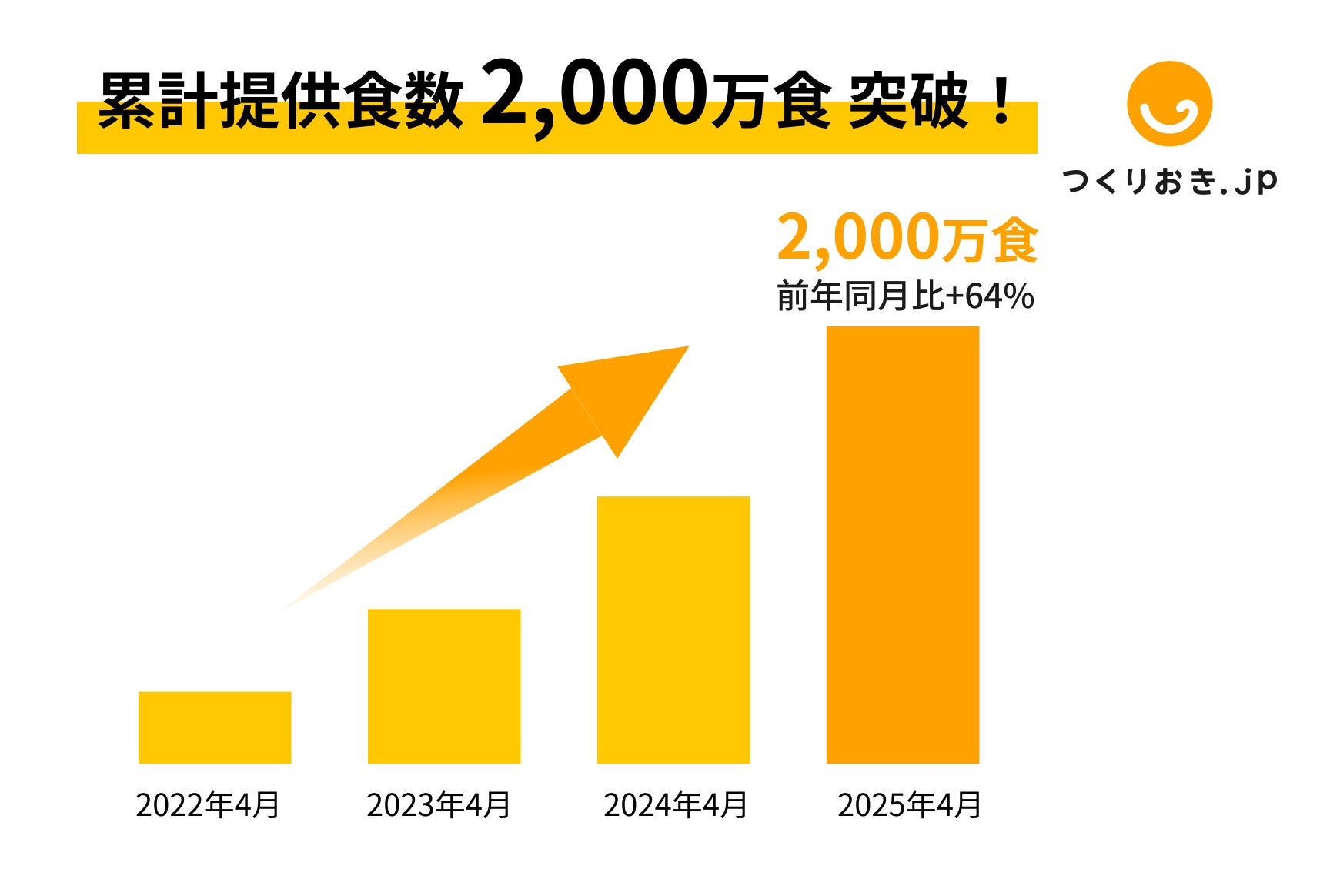 株式会社Antway(所在地:東京都千代田区、代表取締役社長CEO:前島 恵)が運営する手作りおかずの宅配サービス「つくりおき.jp」は、2025年4月に、累計提供食数が2,000万食を突破しました。また、新キッチンのオープンに伴い、5月8日より注文可能エリアを大幅に拡大し、43都府県へのお届けが可能になります。