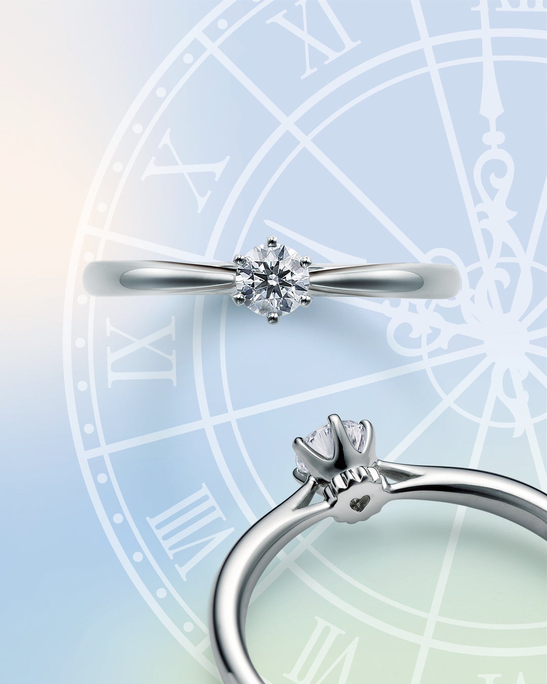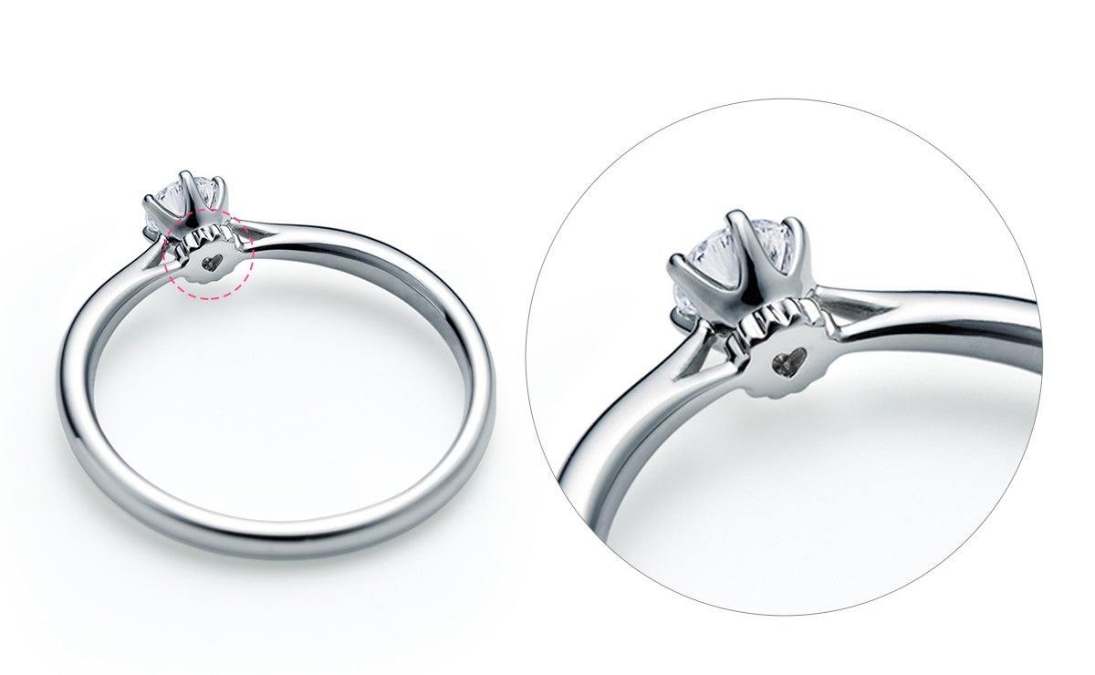 誰からも愛されるストレートフォルムと、愛の象徴である小さな隠れハートをセンターストーンの裏側にあしらった数量限定エンゲージメントリングです。