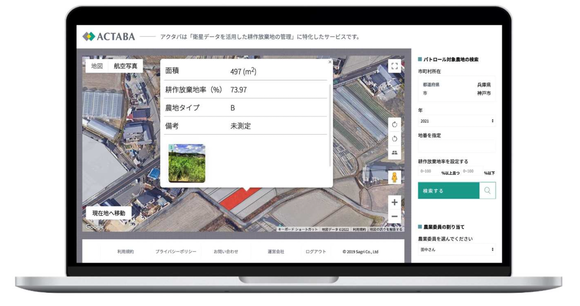 関西初!神戸市農業委員会がサグリの衛星データによる農地パトロール調査を効率化するアプリ「ACTABA(アクタバ)」を導入!