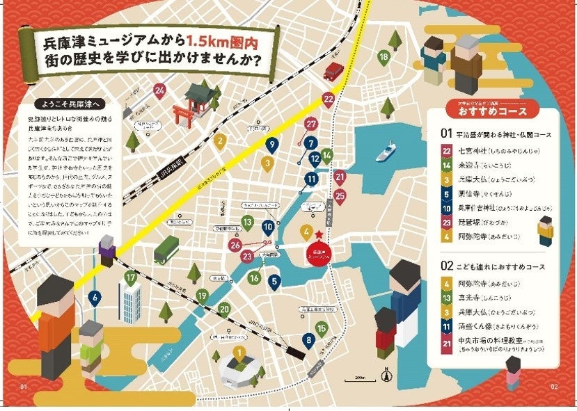 A5判カラー12ページ、2,000部(初回)、2022年4月発行、兵庫津ミュージアム、各掲載施設等で配布予定