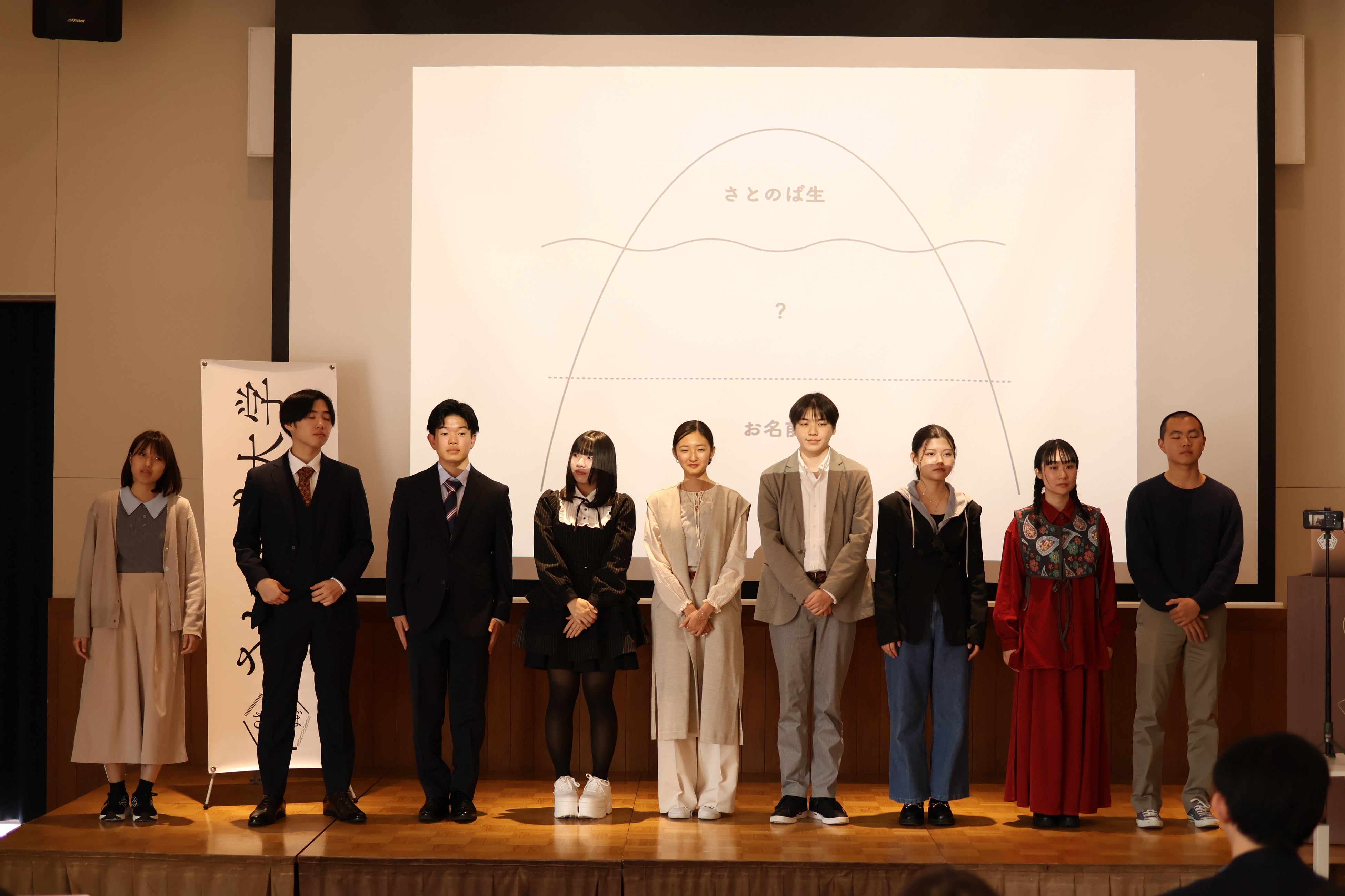 「高校時代は人と比べては自分を否定し、窮屈な教室が全世界なんだと思い込んでしまい、見えている世界を狭めてしまっていました。その後演劇活動を経てさとのば大学に出会い、パンフレットを手に取った時、そこに書かれていた『まず自分のことを知り、心を感じ、それから少しずつ周りに幸せを広げていく』ということに心地よさを感じ、さとのば大学に飛び込んでみようと決めました。地域での経験や関係性、オンライン講義を通して全国各地の仲間と共に学び合える環境で、自分自身を深く見つめていけることに大きな期待を抱いています。この場所だからこそ生み出せる表現を模索しながら、多様なバックグラウンドを持つ個性豊かな仲間と共に歩んでいきたいです。」(新入生代表挨拶より一部抜粋)