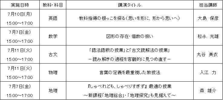 駿台予備学校名古屋校では、高等学校の先生方を対象とした「教科指導研究会(英語・数学・古文・物理・地理)」を、下記の日程で対面(ライブ)開催をいたします(アーカイブ配信はございません)。
