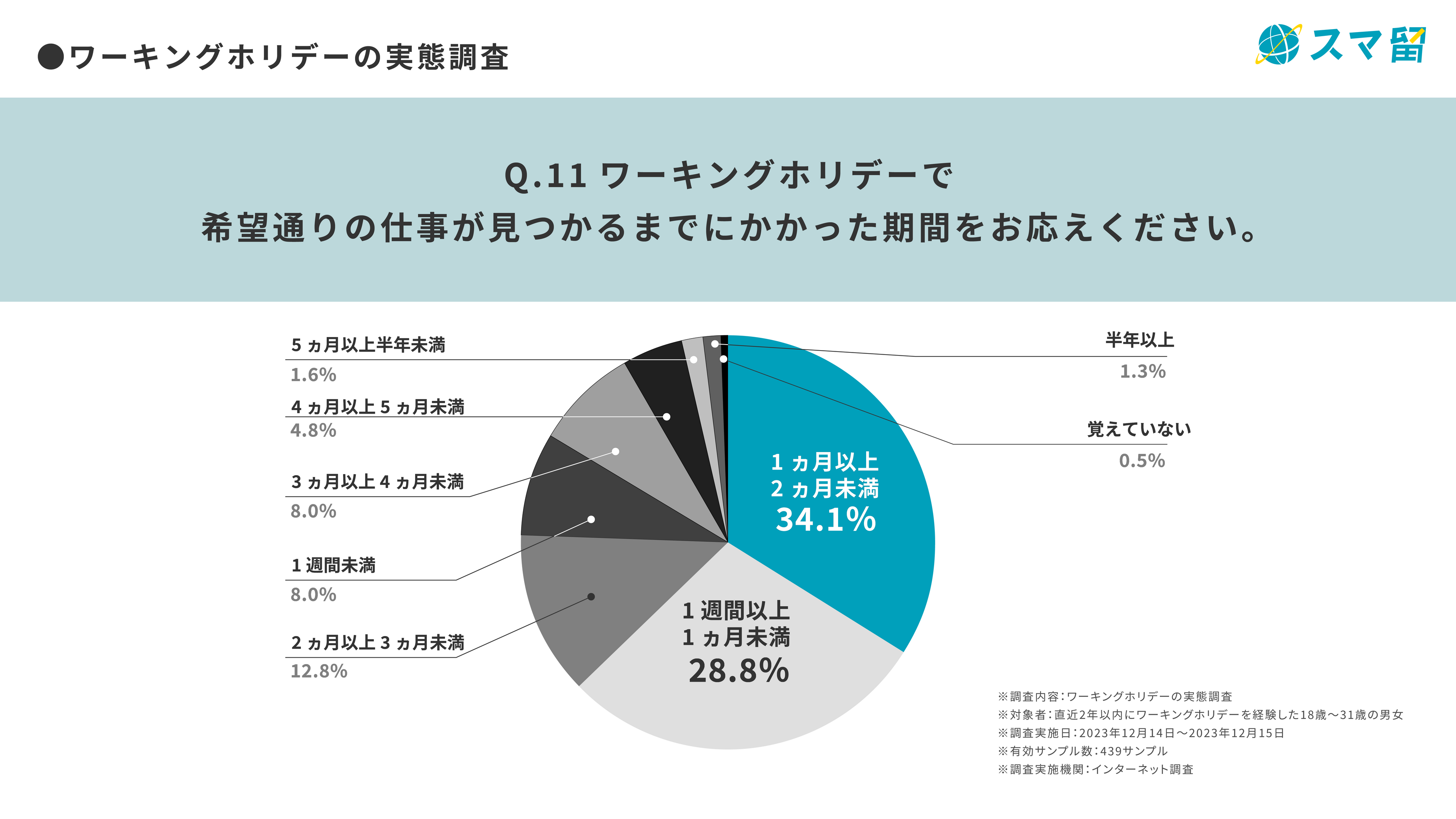 Q11. ワーキングホリデーで希望通りの仕事が見つかるまでにかかった期間を以下よりお選びください。(ワーキングホリデーを複数回経験されている場合、最新の経験に関してお答えください)