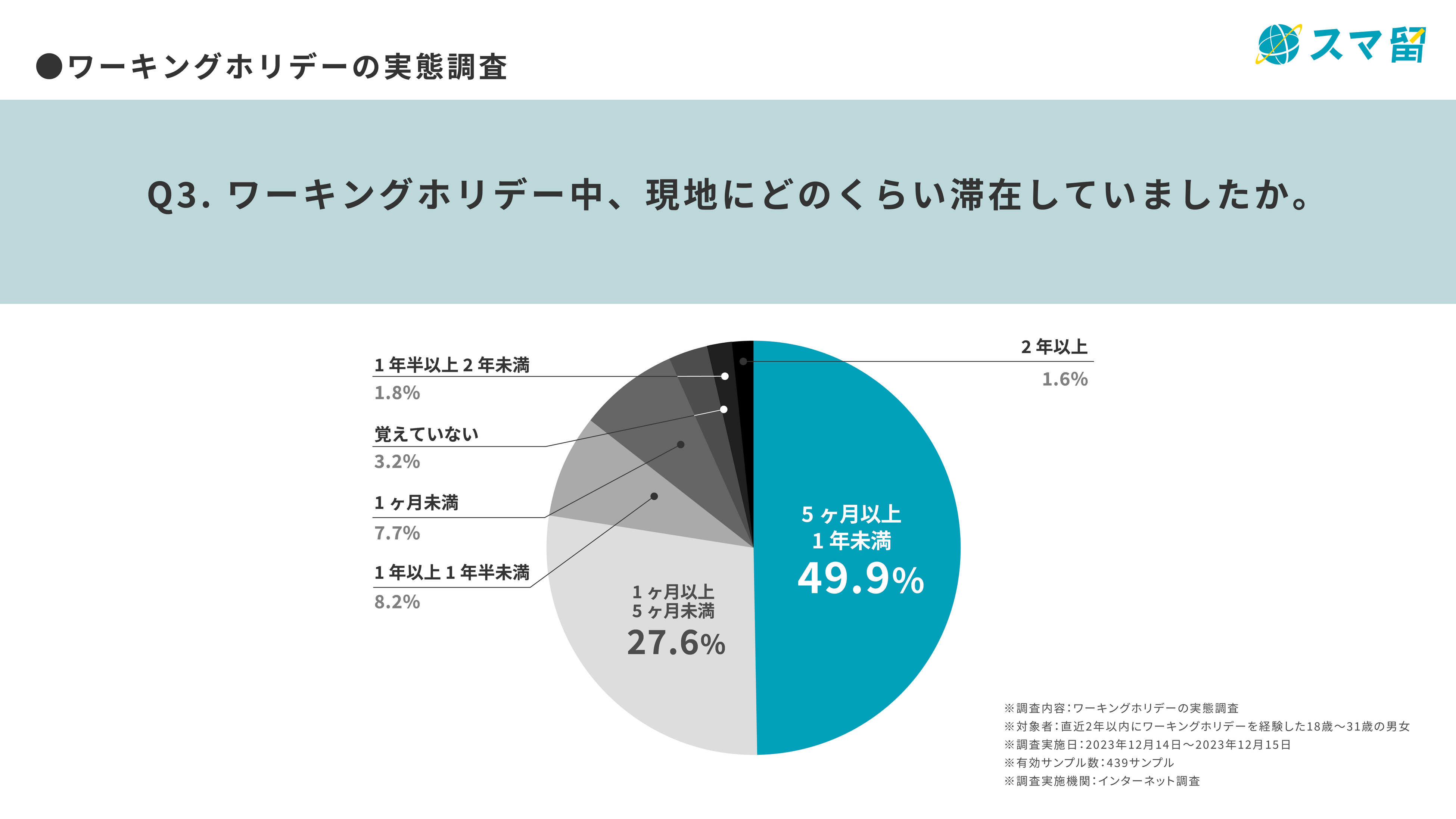 Q3. ワーキングホリデー中、現地にどのくらい滞在していましたか。以下より選択してください。(ワーキングホリデーを複数回経験されている場合、最新の経験に関してお答えください)