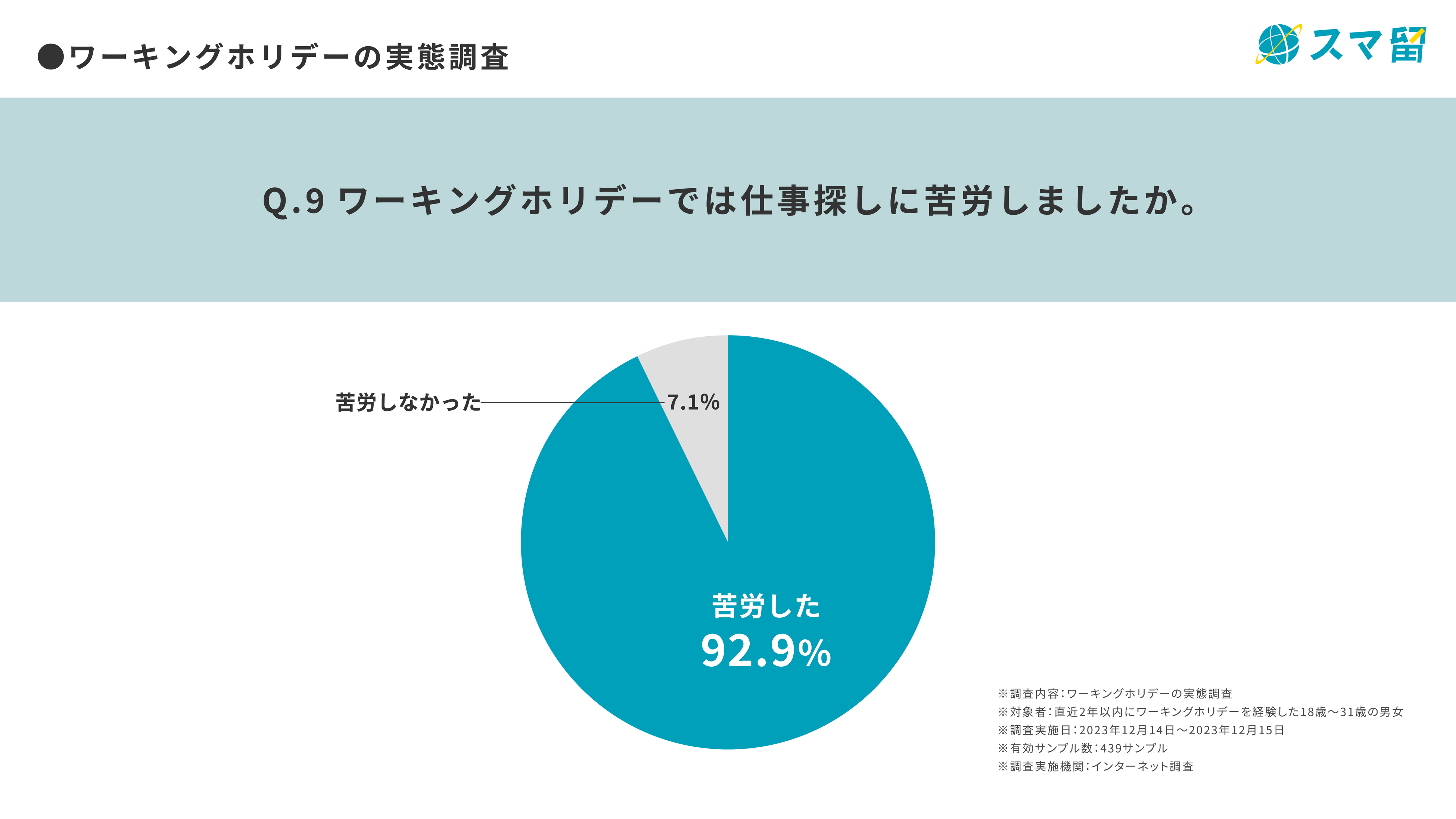 Q9. ワーキングホリデーでは仕事探しに苦労しましたか。(ワーキングホリデーを複数回経験されている場合、最新の経験に関してお答えください)