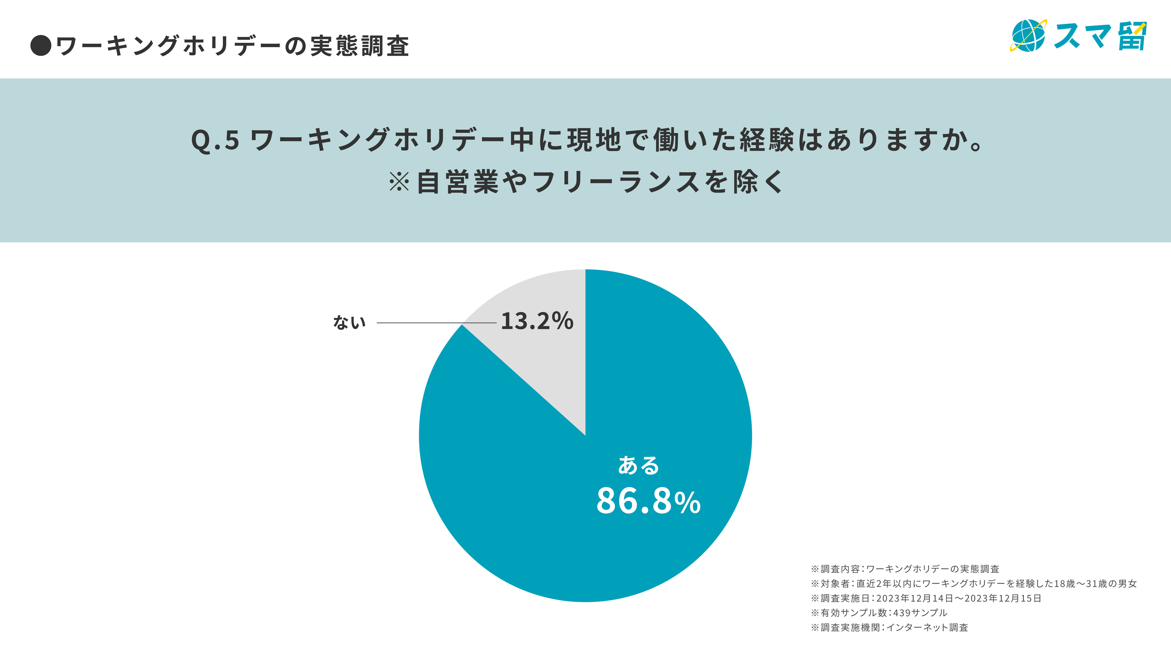 Q5. ワーキングホリデー中に現地で働いた経験はありますか。※自営業やフリーランスを除く(ワーキングホリデーを複数回経験されている場合、最新の経験に関してお答えください)