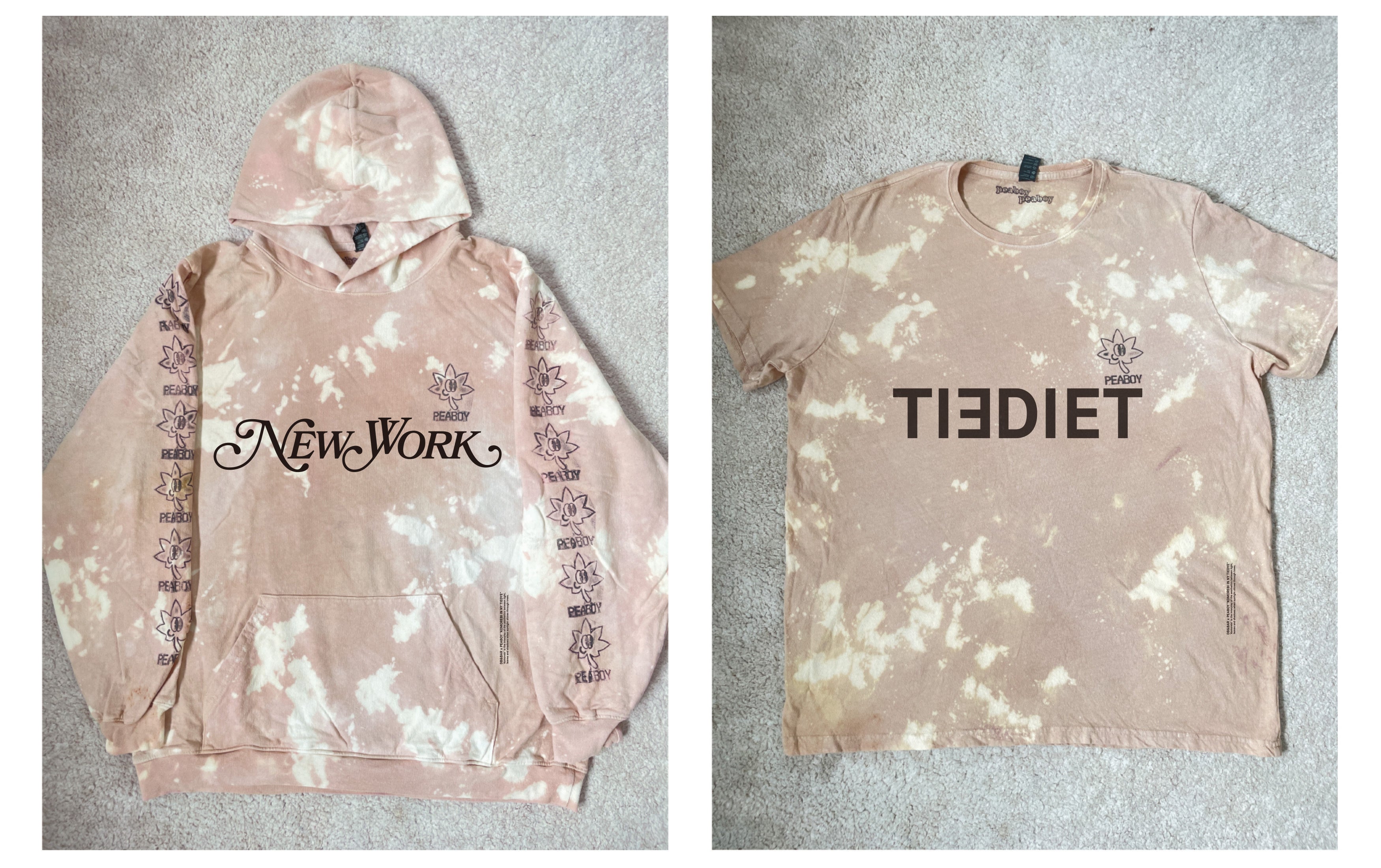 PEABOYと作成したTシャツとフーディは、彼らが住むNYの街中の木漏れ日をイメージしたタイダイ染めが印象的です。