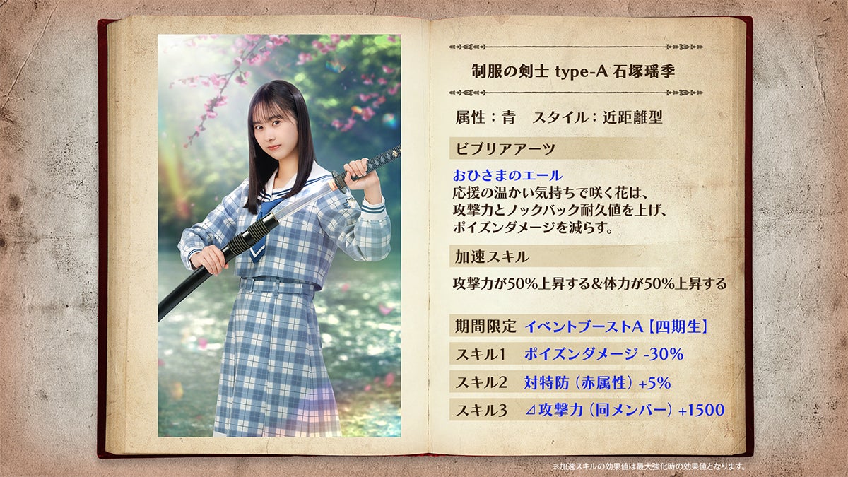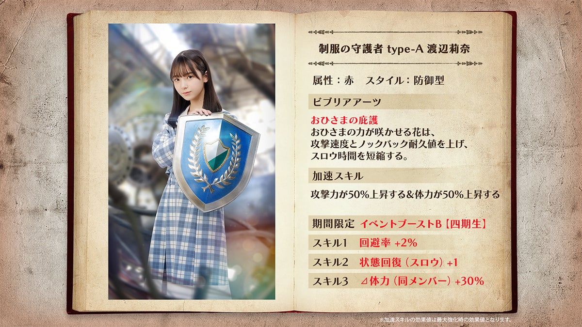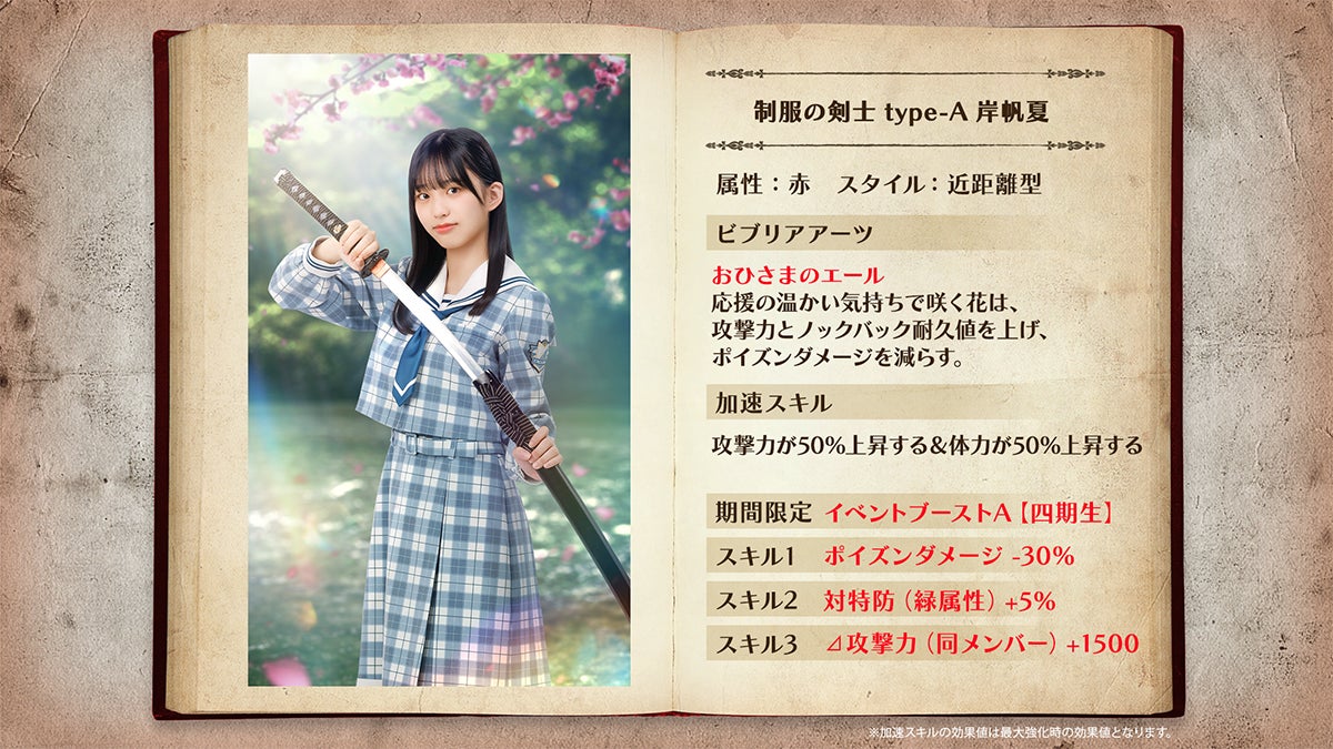 「制服の剣士(四期生)」「制服の守護者(四期生)」ともに、加速するごとに自らの体力・攻撃力がアップしビジュアルも変化する「加速スキル」を持っています!