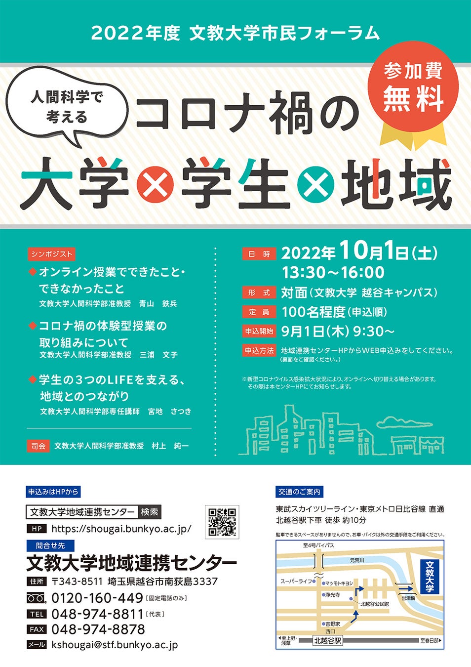 10月1日(土)文教大学市民フォーラム「人間科学で考える コロナ禍の大学×学生×地域」を開催