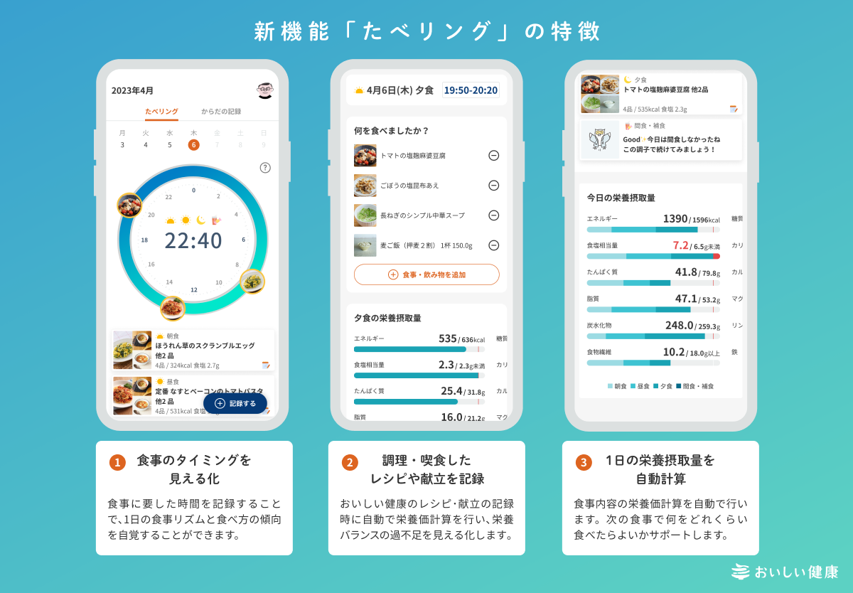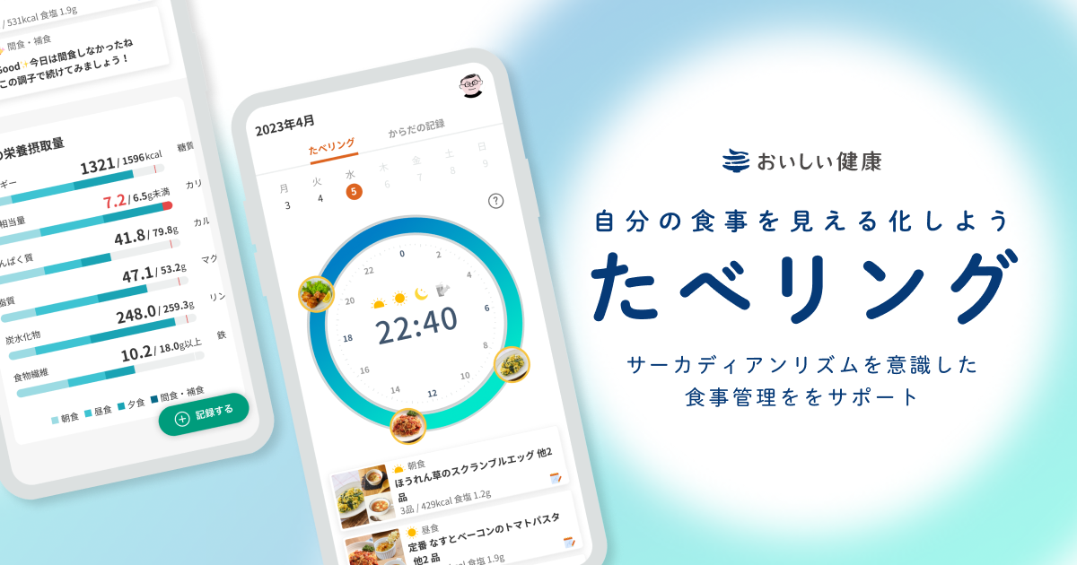 パーソナライズ献立提案・栄養管理アプリ『おいしい健康』サーカディアンリズムを意識した食事管理をサポートする新機能「たべリング」をリリース