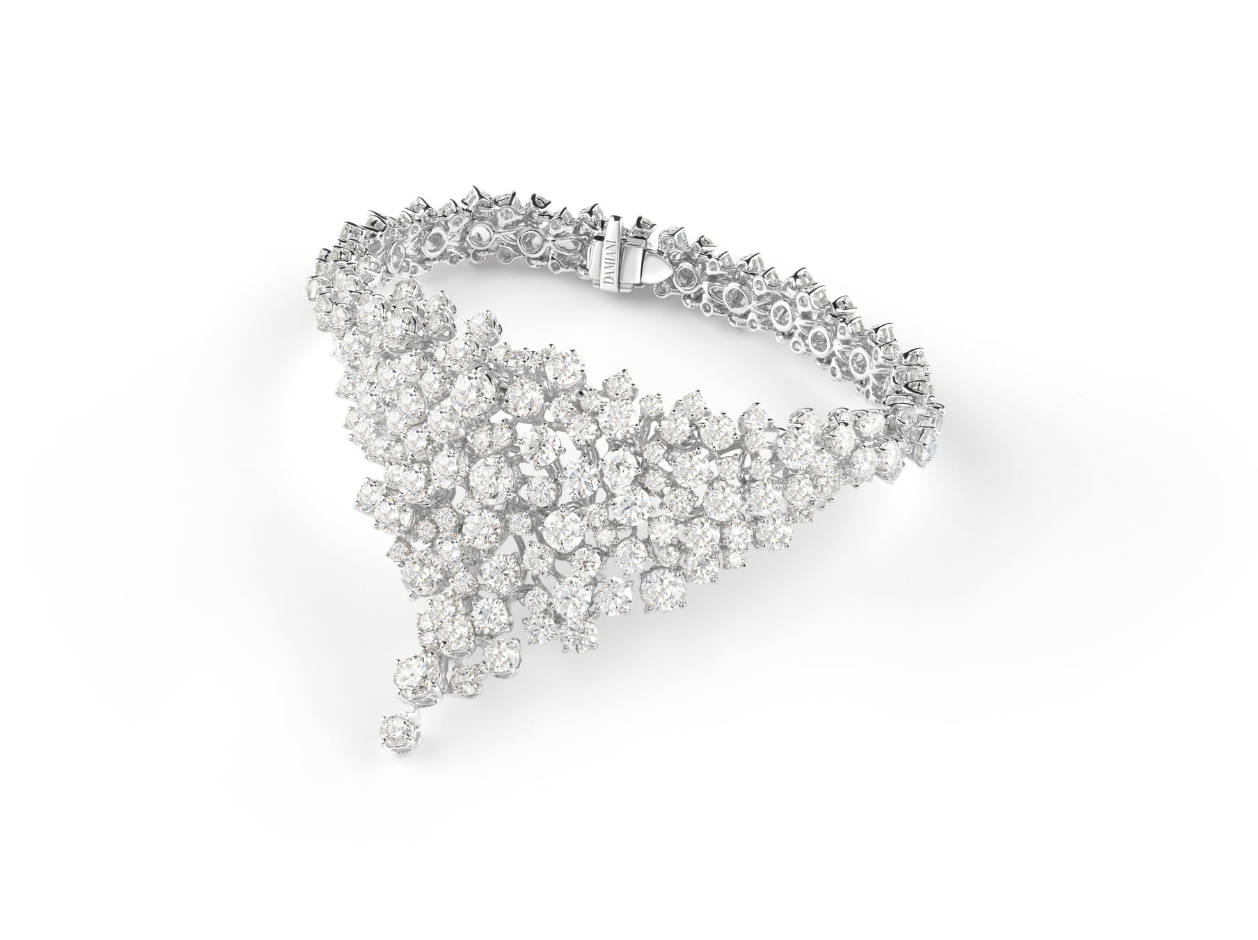 メゾンのクラフツマンシップと独創性を表現する壮麗なホワイトゴールドのネックレスに、436石のブリリアントカット ダイヤモンド 合計32.29カラットがあしらわれています。