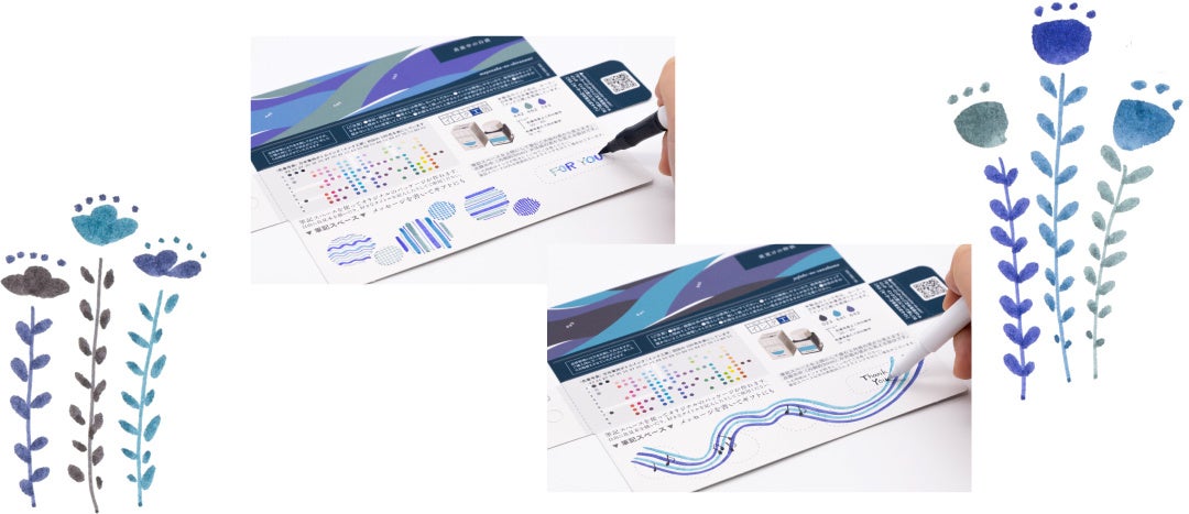 中台紙の筆記スペースにお好きな柄やイラストを描いてオリジナルのパッケージを作れます。
