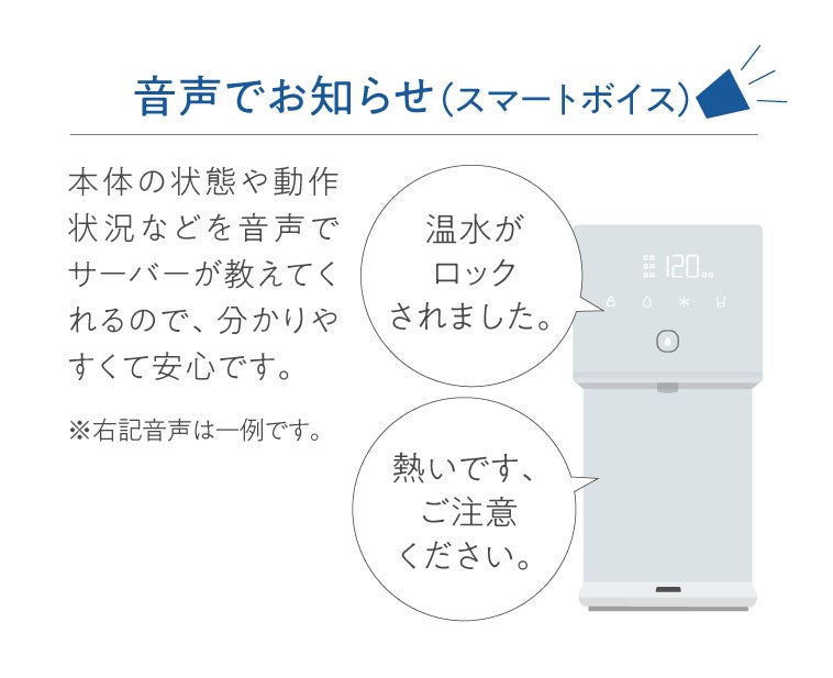 本体の状態や動作状況などを音声で教えてくれるので、分かりやすくて安心です。