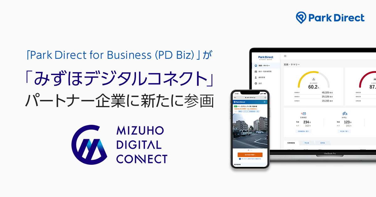 「Park Direct for Business(PD Biz)」では、法人が契約する駐車場の「探す・契約する・管理する」といった駐車場関連業務すべてをオンライン化しアウトソーシングすることで大幅に効率化することが可能になります。2021年のサービス開始より、大手企業のみならず中堅・中小ベンチャー企業をはじめとする多数の企業に導入いただいております。今回、みずほデジタルコネクトのパートナー企業として参画することで、みずほ銀行の法人のお客様に対し、法人車両における駐車場管理のDX支援を進めてまいります。