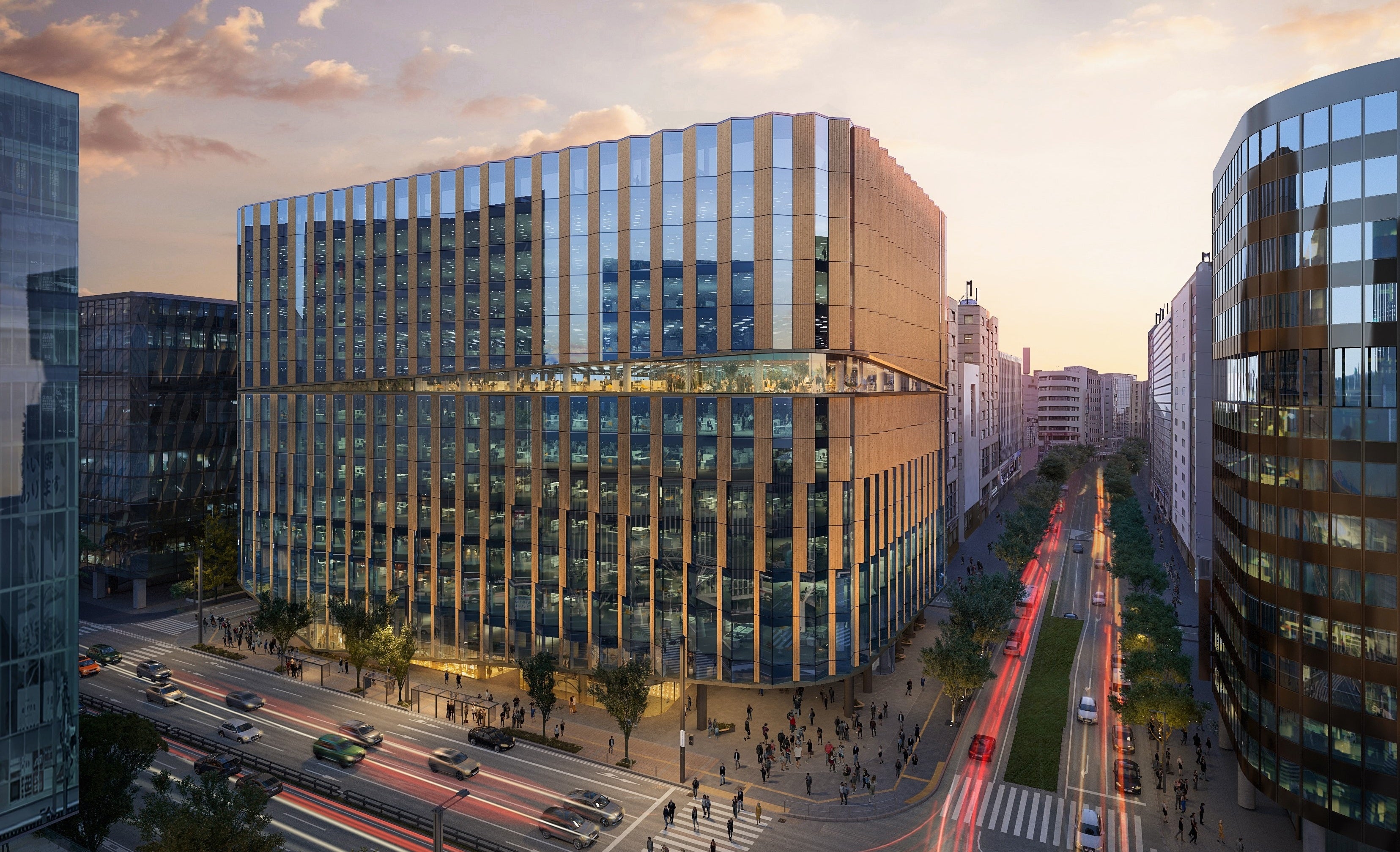 株式会社西日本シティ銀行および福岡地所株式会社が開発する「西日本シティビル」は、西日本シティ銀行保有ビルの連鎖的再開発の第一弾として、西日本シティ銀行の本店機能に加え、オフィスフロアや商業店舗を配置した複合ビルを計画しています。また、多様化するワークスタイルおよびウェルビーイングに配慮したハイグレードオフィスです。