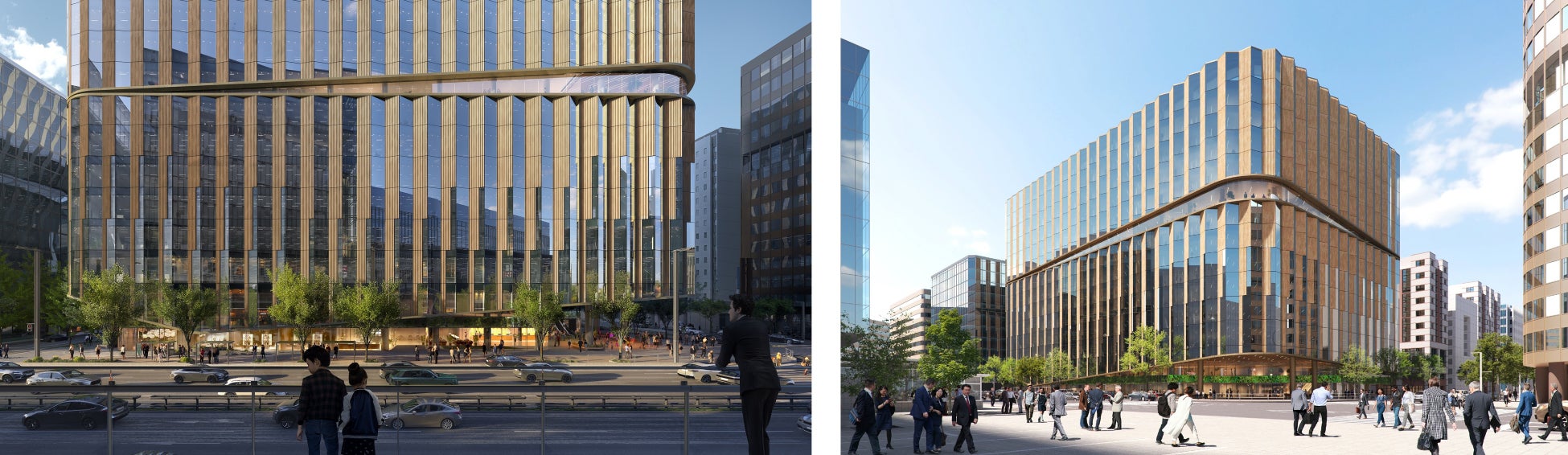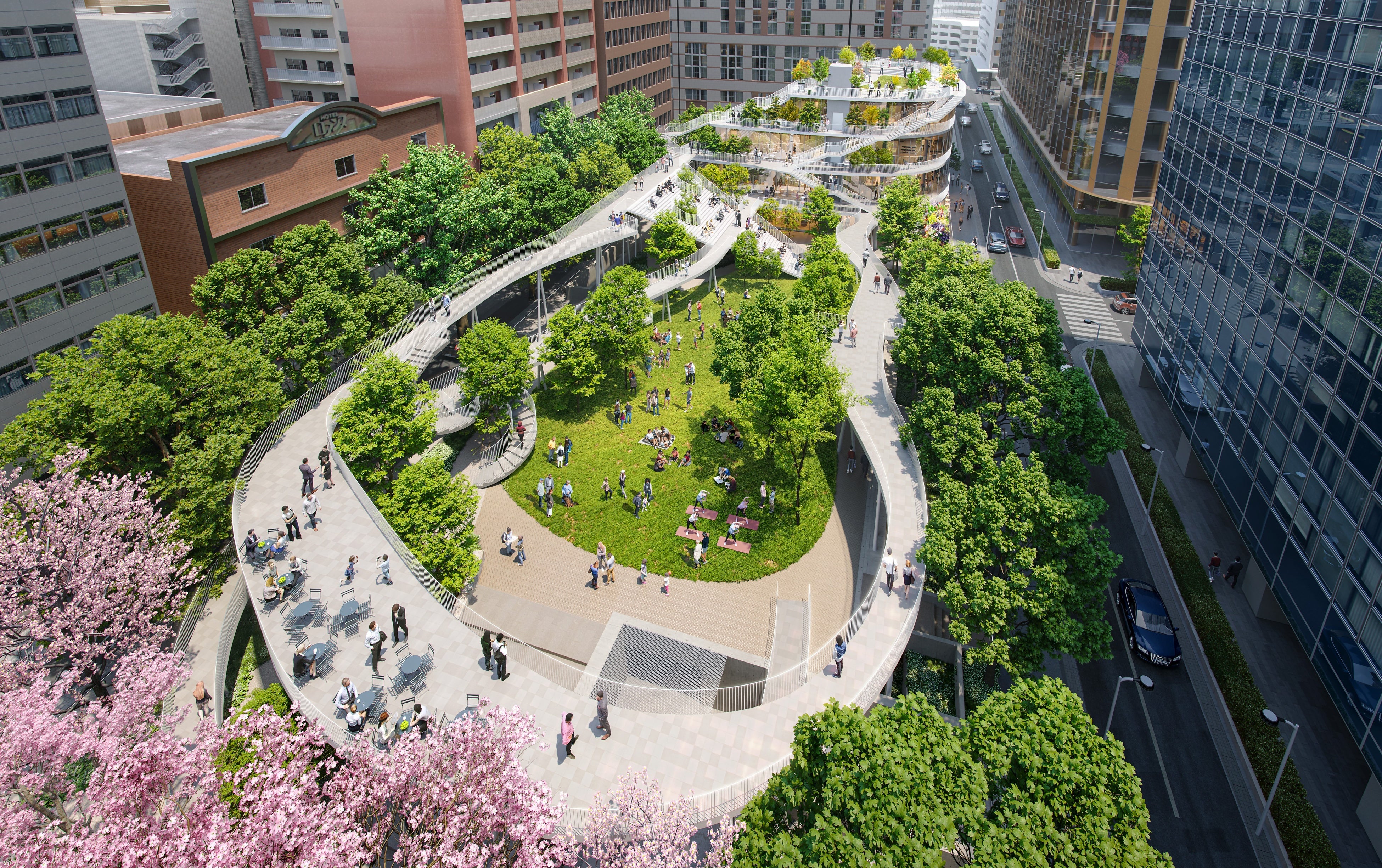 デンマークを拠点に活動する国際的な建築デザイン事務所「3XN Architects」が内外装の洗練されたデザインを手掛ける国内初の建築物となります。駅前広場を中心に、周辺の商業エリアや公園と連続する公園・エリア一体型の都市環境を形成し、利便性の高い商業機能と公共性のあるオープンスペースが共存する、回遊性と賑わいに満ちた都市空間を実現します。
