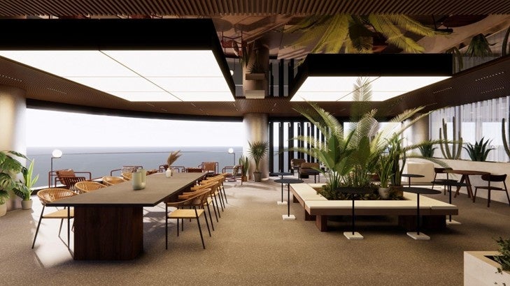 「WeWork 博多」は、自然光やオフィス緑化が広がる開放的なラウンジ、博多駅を望むことができる半屋外空間、アロマの導入に加え、現在建設中の明治公園に隣接するなど、心と身体を整えるウェルネス空間を備え、クリエイティビティやウェルビーイングが向上する次世代の働き方を提供します。またWeWork がビル共用ラウンジをプロデュースする「THE LOUNGE by WeWork」の空間の提供も予定しており、WeWork 入居メンバーおよびビルテナントが利用可能になります。