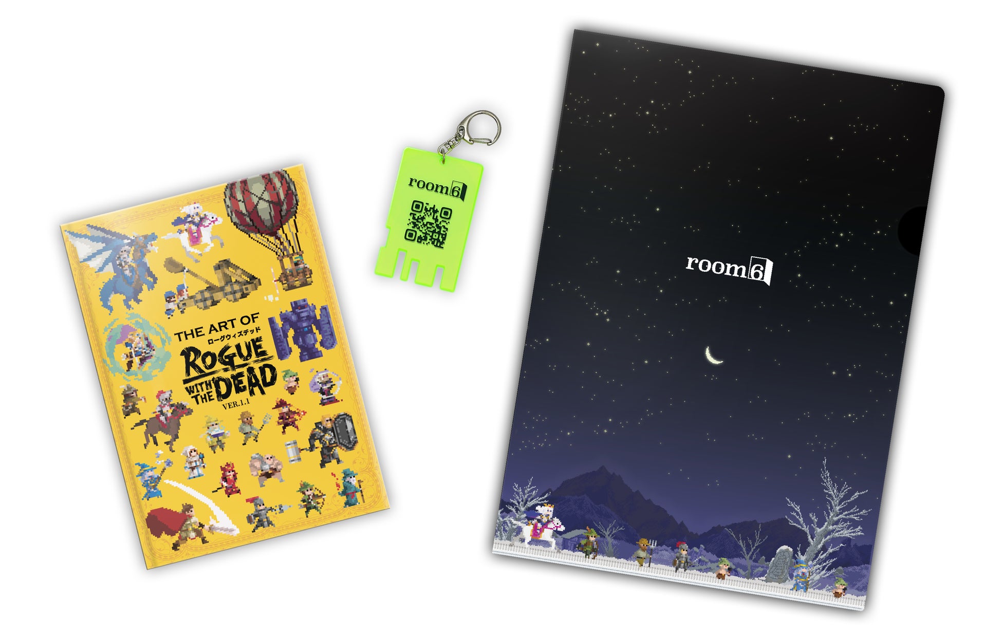 また、『ローグウィズデッド』のアートブックや、room6特製クリアファイル、キーホルダーなどを各日数量限定で配布します。是非room6ブースにお越しください。