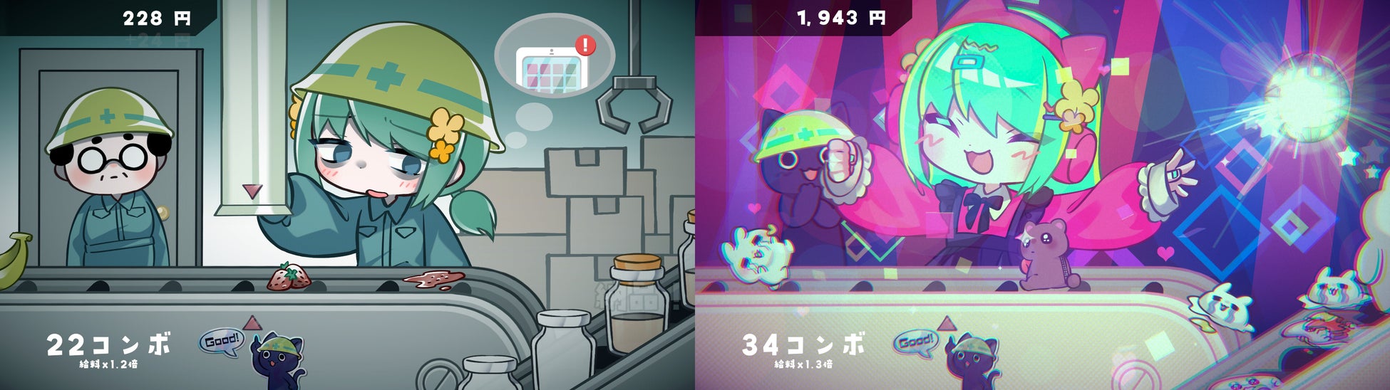 『キメキャワ♥限界ビートちゃん!!』は、フルーツとモンスターを潰し、お給料で機能を開放していく限界リズムゲームです。