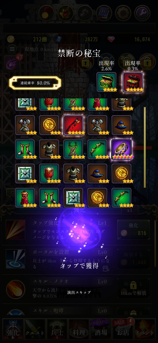 『ローグウィズデッド』は、兵士たちを強くして旅を続けていく、ループ無限進行型の新しい放置RPGです。プレイヤーに与えられた使命は、兵士たちの指揮官として、300km先に君臨する魔王を倒すこと。死んでも次の周回へ持ち越せる「アーティファクト」を集め、繰り返し進軍することで兵士たちをどんどん強力にしていきましょう。