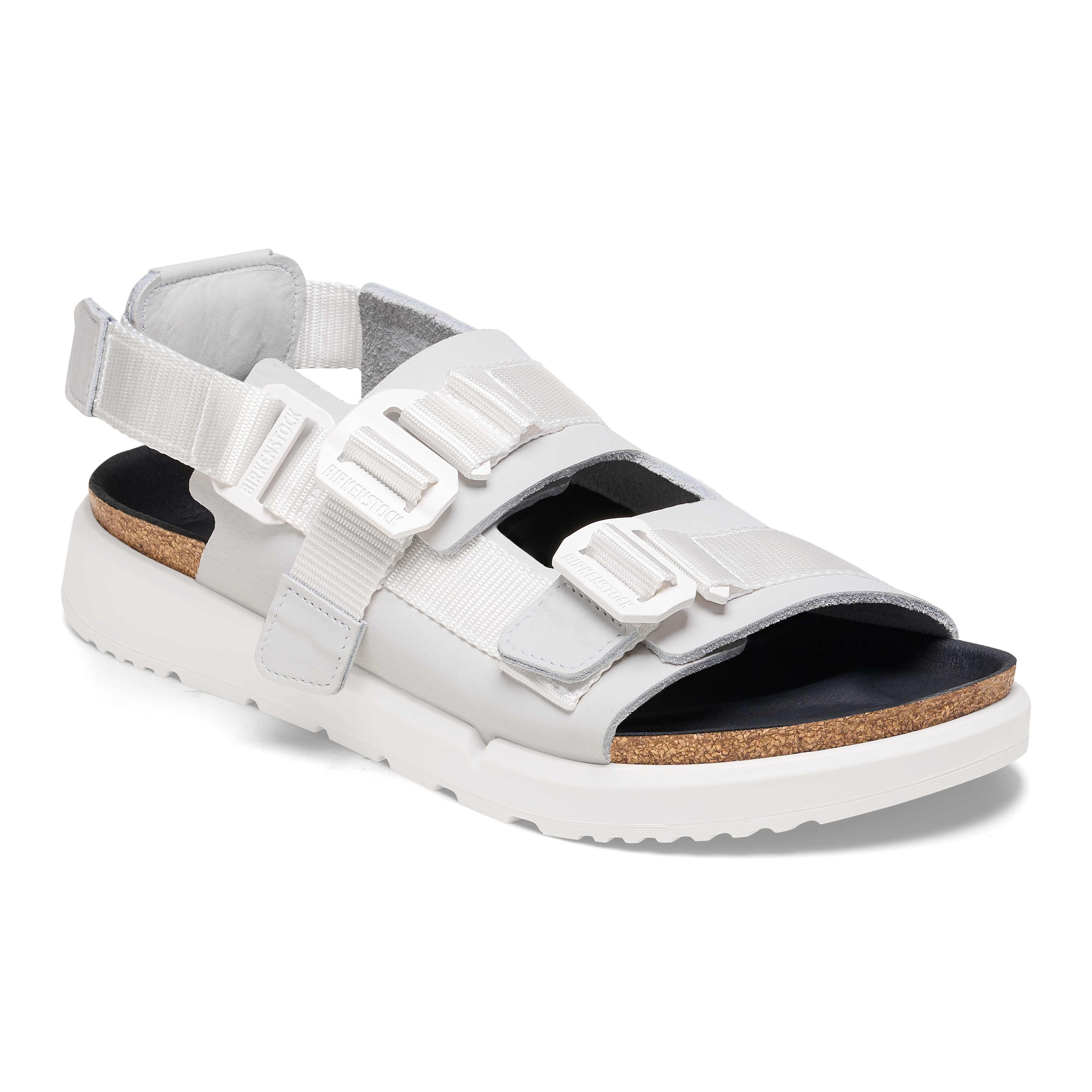 様々な顔を持ち、日本を代表する都市のひとつである“新宿”の名がつけられたのは、足に柔らかくフィットする上質なヌバックレザーに、スポーティな雰囲気のウェビングをミックスさせたサンダル。ユーティリティウェアからインスパイアされたメタル製のGフックバックルと、ウェビングのサイドに施したBIRKENSTOCKのデボスロゴが、ストリートな雰囲気を与えます。サイドに覗くコルクの層がアイコニックなアクセントとなっています。
