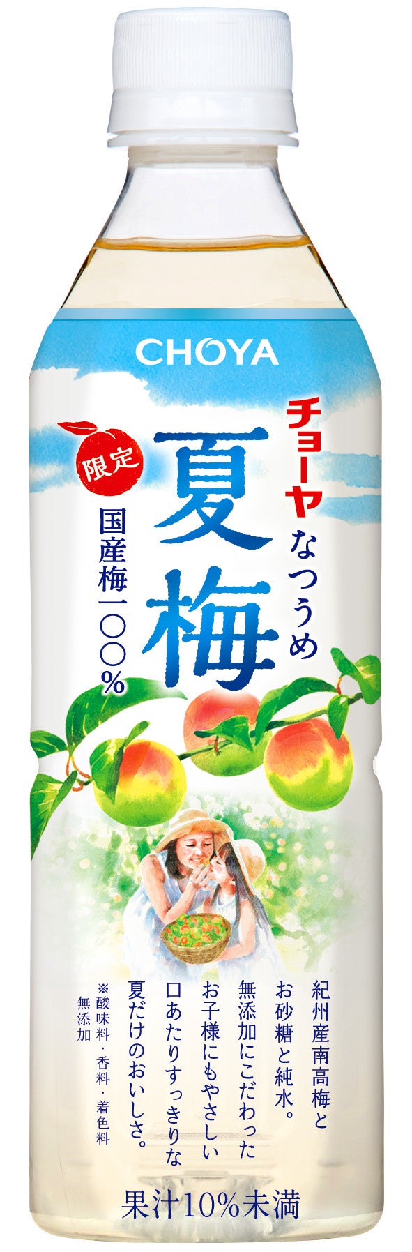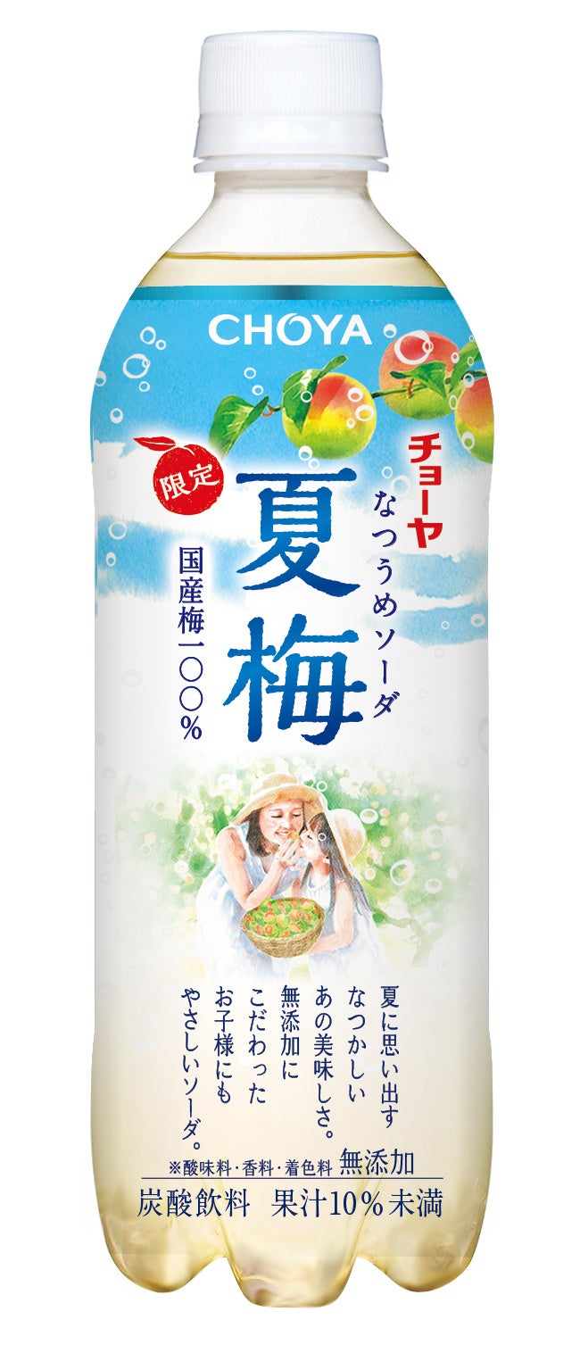 「CHOYA 夏梅」、「CHOYA 夏梅ソーダ」は、梅の最高品種とされる紀州産南高梅を使用した無添加(※)の自然派飲料で、「CHOYA 夏梅」は2015年、「CHOYA 夏梅ソーダ」は2019年から毎年数量限定で発売しています。(※)酸味料、香料、着色料不使用