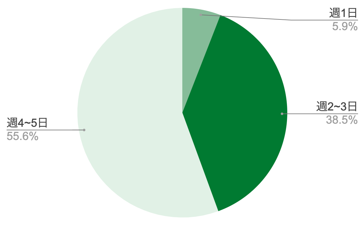 今回の調査対象となったフリーランス副業案件の稼働日数は、44.4%が週3日以下の案件でした。