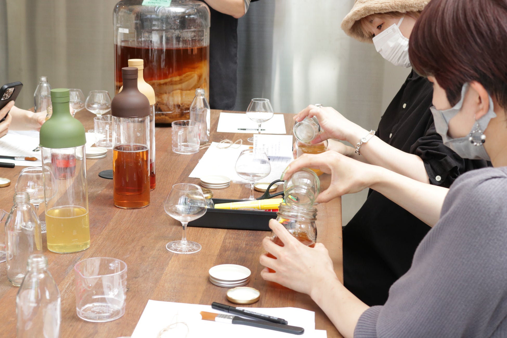 「KOMBUCHA EXPERIENCE」は名称の通り、【聴く・作る・見る・香る・飲む・味わう】を通してコンブチャの世界を体験していただけるツアーです。昨年10月から取り組みを開始して以降、毎回満員御礼のコンブチャを創るワークショップに加え、一般公開初となるブルワリー見学や「1110 CAFE/BAKERY」※のシェフが手掛けるプラントベースの食事とのペアリング体験を予定しております。ブルワリー内に広がる発酵がもたらす香りの体験やコンブチャの菌株「スコビー」の試食体験等、ここでしか体験できないコンテンツをご用意しました。