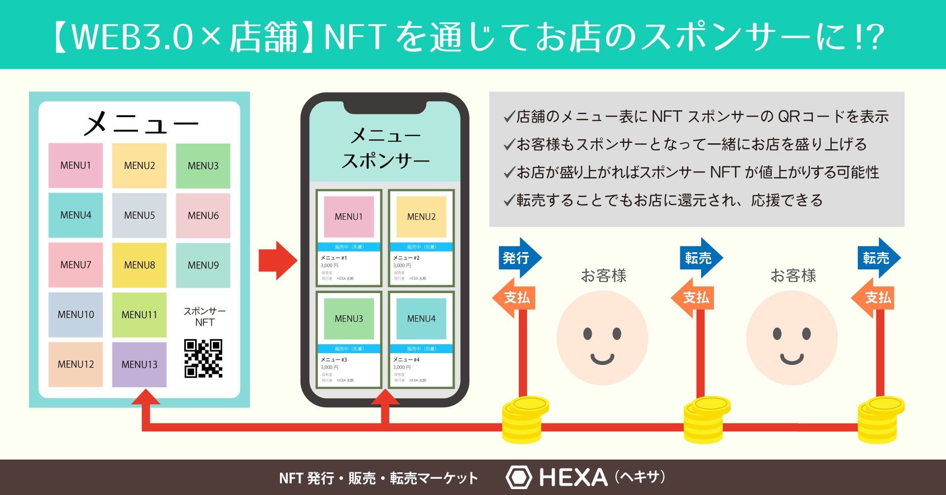 NFTマーケット「HEXA(ヘキサ)」では、埼玉で創業50年の「焼肉森林」がメニュースポンサーNFTを発行し、WEB3.0×NFT×SNSのマーケティング施策を実現します。
