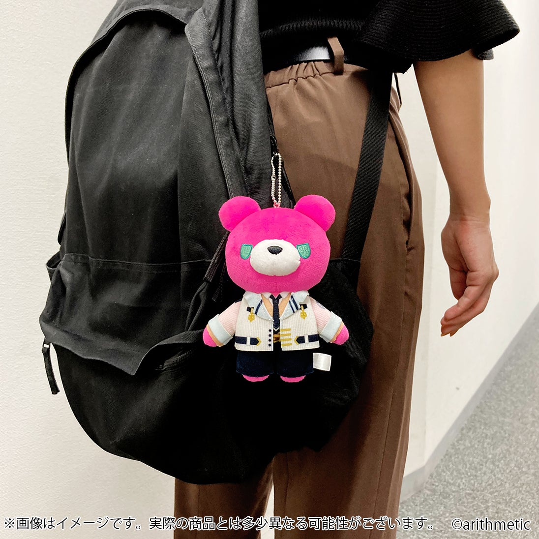 みにべあ!は、各バンドのイメージカラーを使用したボディに、各々のキュートな表情が特徴的な、ルチル大学付属高等学校の制服を着用した持ち運びしやすいクマのマスコットとなっております。