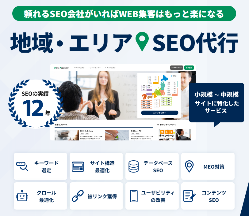 過去12年間で多くの地域SEOを行ってきた経験と実績があるため「体系化された施策ではなくエリア集客の成果に繋がるSEO」が可能です。