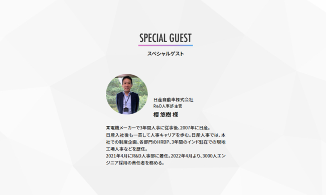 ゲスト:日産自動車株式会社 R&D人事部 主管 櫻 悠樹 様