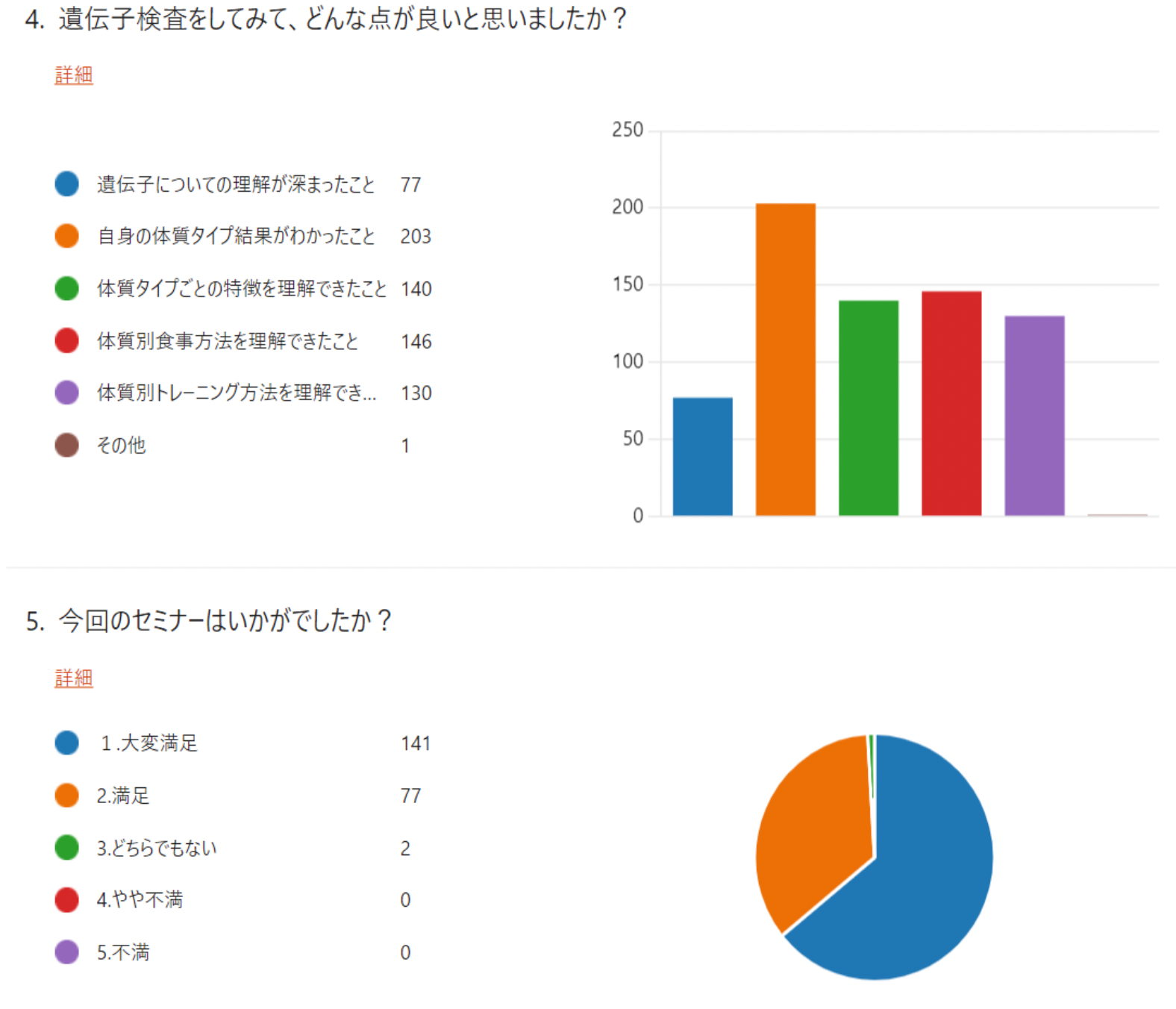 開催後の結果のアンケートでは上記のように、満足と回答した方が98%以上という結果を得ることができました。