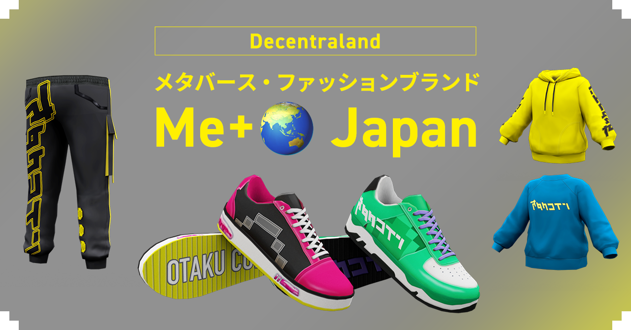 本日、一般社団法人オタクコイン協会・株式会社FORCESは、メタバース上に新たなファッションブランドを創出する実証実験として、有力メタバースサービス「Decentraland」上で着飾れるメタバース・ファッションブランド『Me+🌏 Japan』の第3弾、オタクコイン・ロゴをモチーフにした「スニーカー」「パーカー」「スウェット」「パンツ」の販売を開始したことを発表しました。今回は、オタクコイン・ロゴが施された「スウェット」が、お買い求めやすい1着約40円(0.1MANA・時価/本日時点)で購入でき、メタバース・ファッションを初めて触れる方にとっても大変親しみやすい企画となっております。