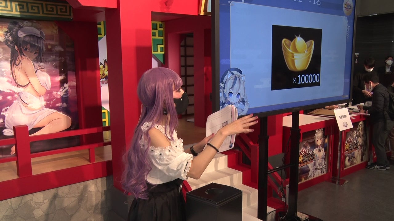 ディスプレイには電子機器や放置少女グッズなどの豪華な景品が映し出されましたが、やはり何より会場がどよめいたのは多額の元宝(ゲーム内通貨)。