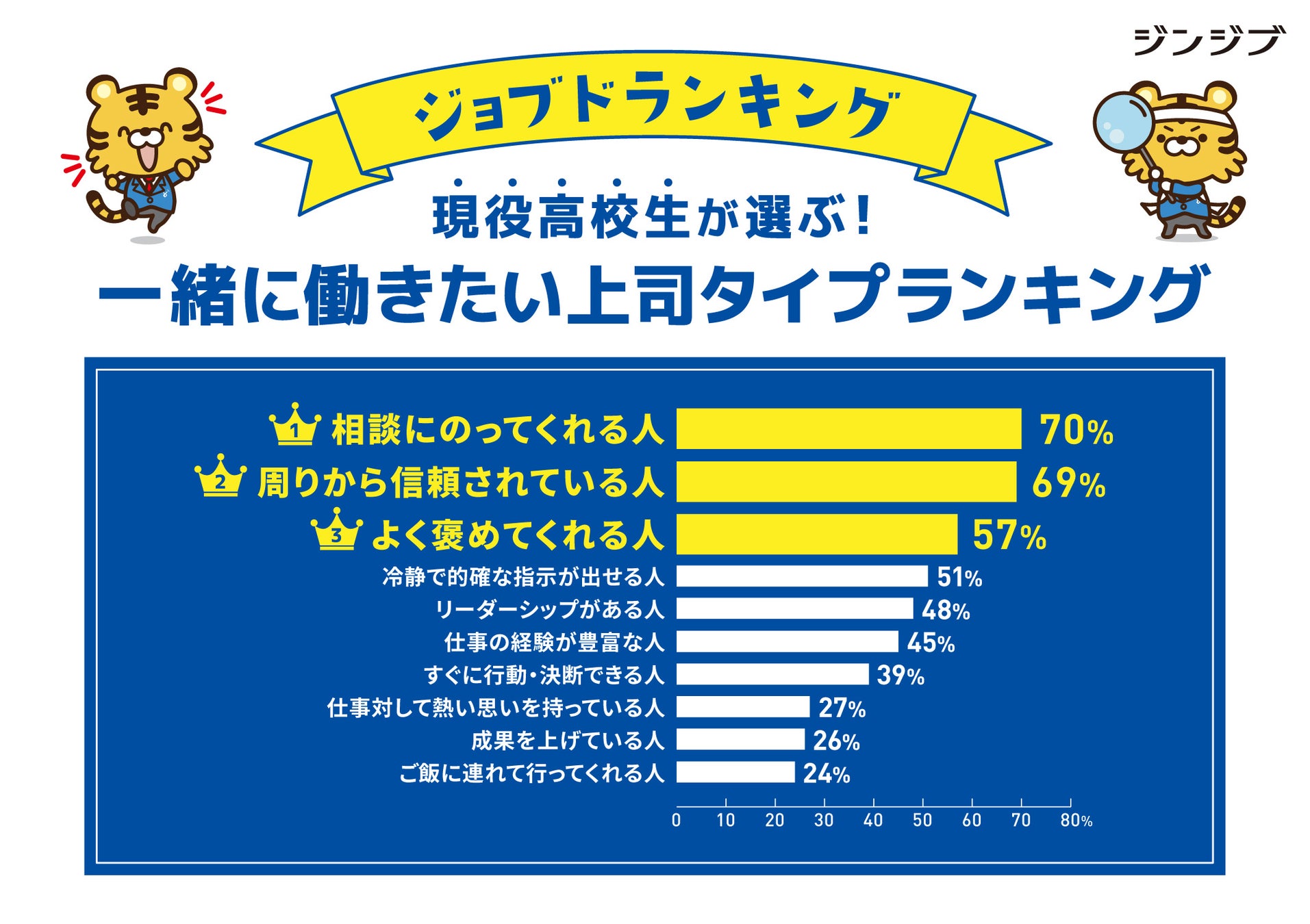 今回のテーマは、10月16日の「ボスの日」にちなみ、現役高校生が選ぶ「理想の上司」について、「有名人部門」「アニメ・ゲームキャラ部門」「タイプ部門」「上司にかけられたい言葉部門」のアンケートを行いました。