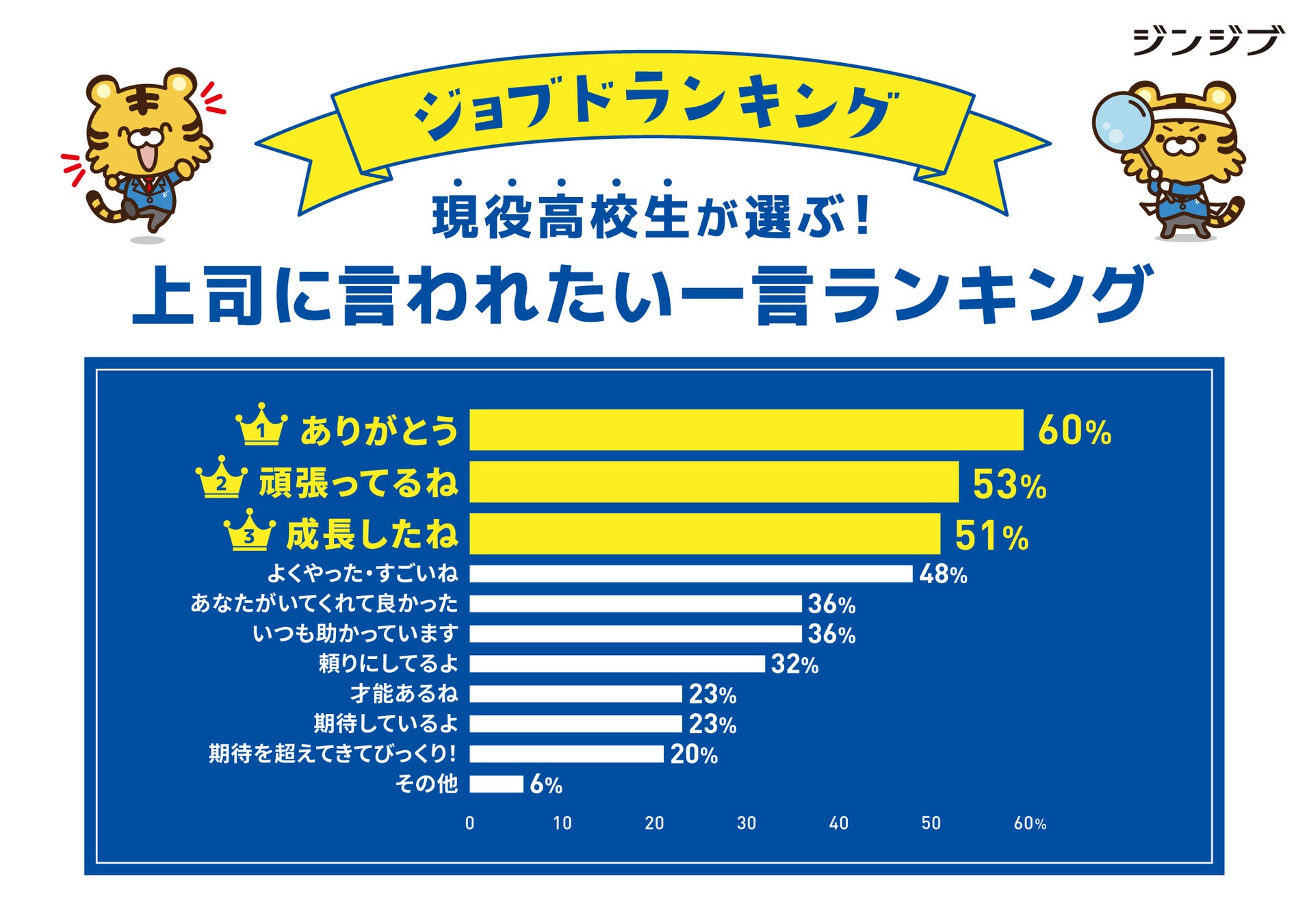 また、普段かける言葉の重要性も伺えます。「ありがとう」など感謝の言葉、「頑張っているね」「成長したね」などの労いや褒める言葉を意識して日頃のコミュニケーションを取ることで信頼関係を深めることができると言えます。上司と部下のコミュニケーションの中でこれらの言葉が職場にあふれているか今一度チェックしてみてはいかがでしょうか。「現役高校生が選ぶジョブドランキング」では今後も「働く」に関するアンケートをランキング形式でご紹介します。