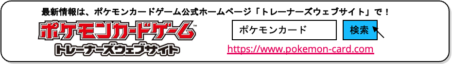 | 報道関係各位からの本情報についてのお問い合わせ窓口、および原稿確認の窓口 株式会社ポケモン カード事業統括部 徳山亜希子 e-mail:tokuyama@pokemon.co.jp |