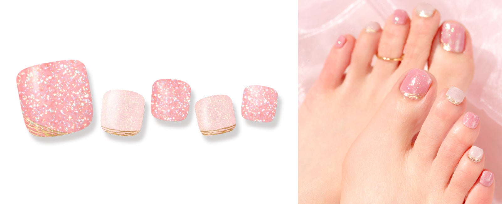 華やかなラメが夏のフットを甘く彩る、ピンクのワントーンデザイン