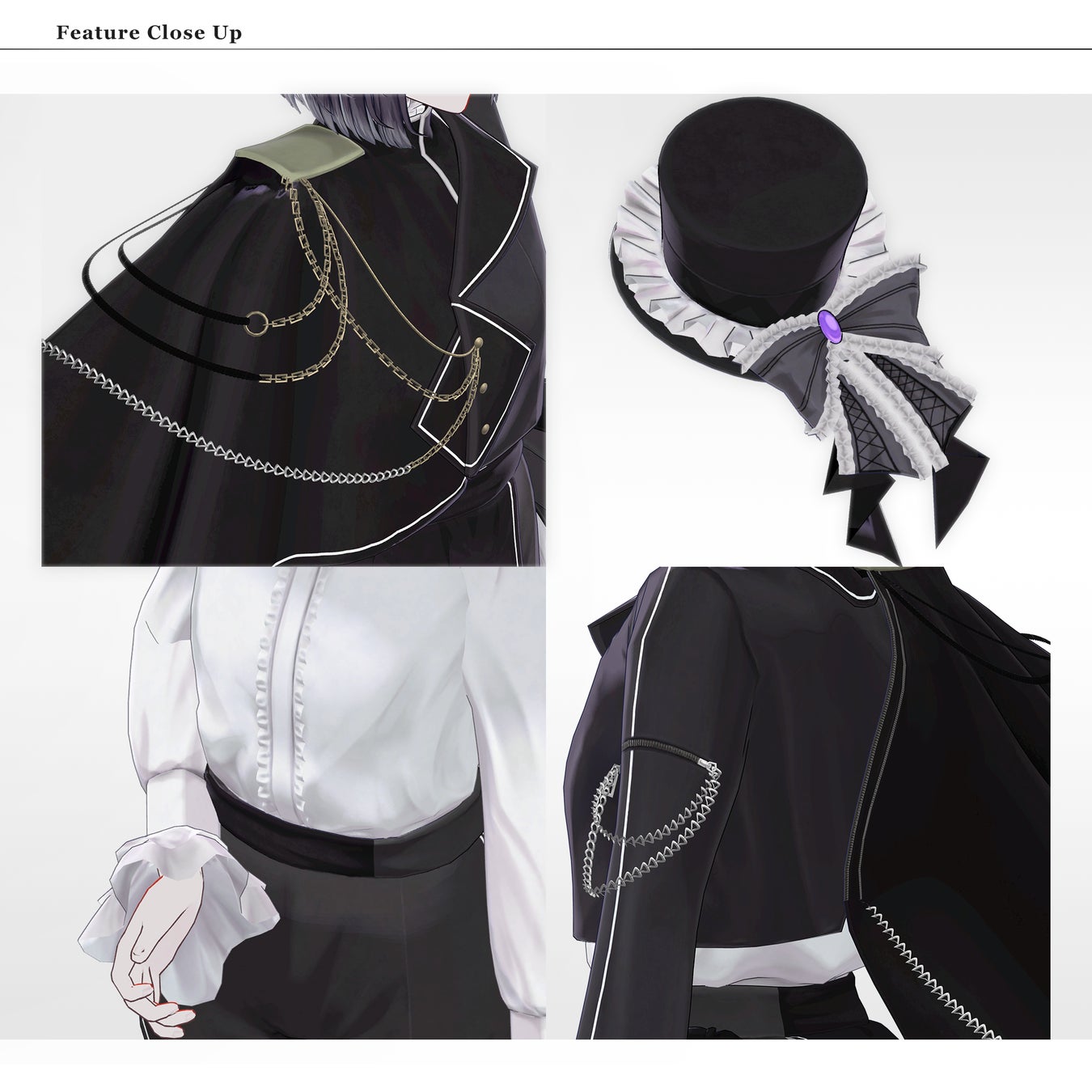 「ドール」がコンセプトで、気品あるロングコートと、男性用のハイヒールが特徴のアバター。