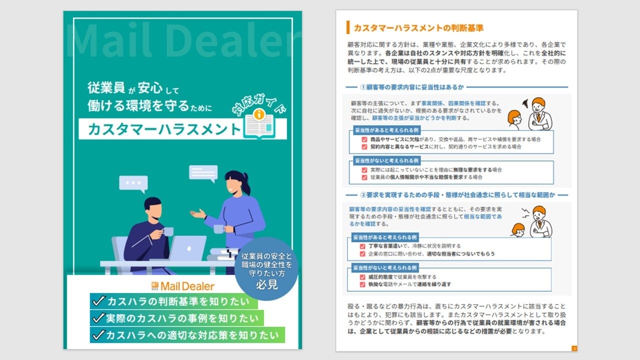 メール共有・管理システム「メールディーラー」、カスタマーサポート部門向けにカスハラへの対応策をまとめた「カスタマーハラスメント対応ガイド」を公開