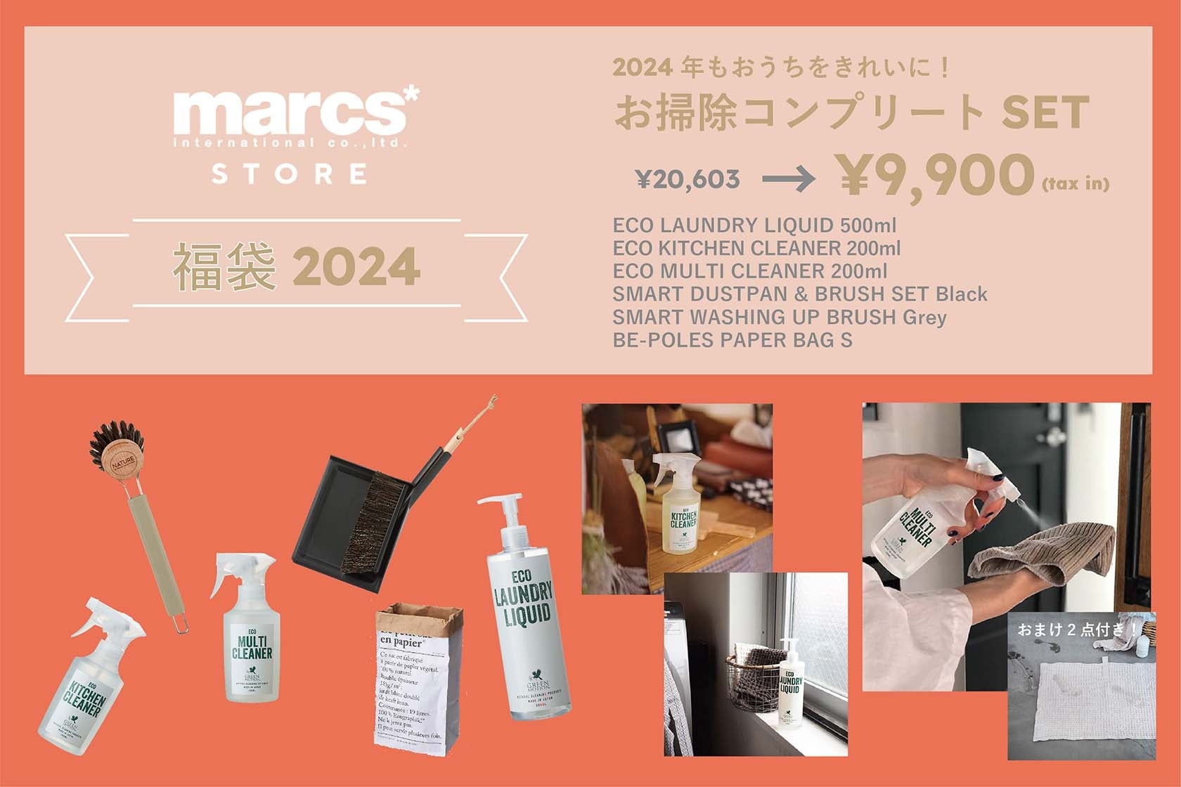 そして最後は、marcs STOREで人気のお掃除アイテムが揃った「2024年もおうちをきれいに!お掃除コンプリートSET」。年末年始の大掃除にも役立つオリジナルブランドのエコ洗剤やお掃除グッズが揃った福袋です。