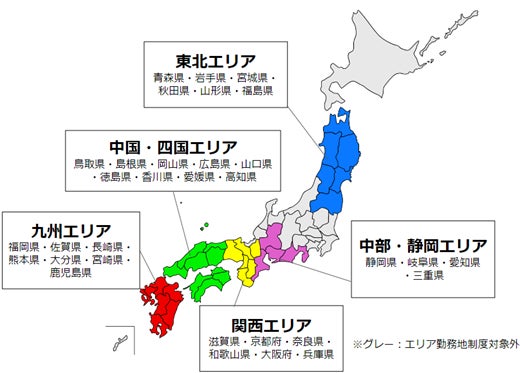 転勤範囲を所定のエリア範囲内に限定する制度です。5つに分かれているエリアの中から選択が可能です。