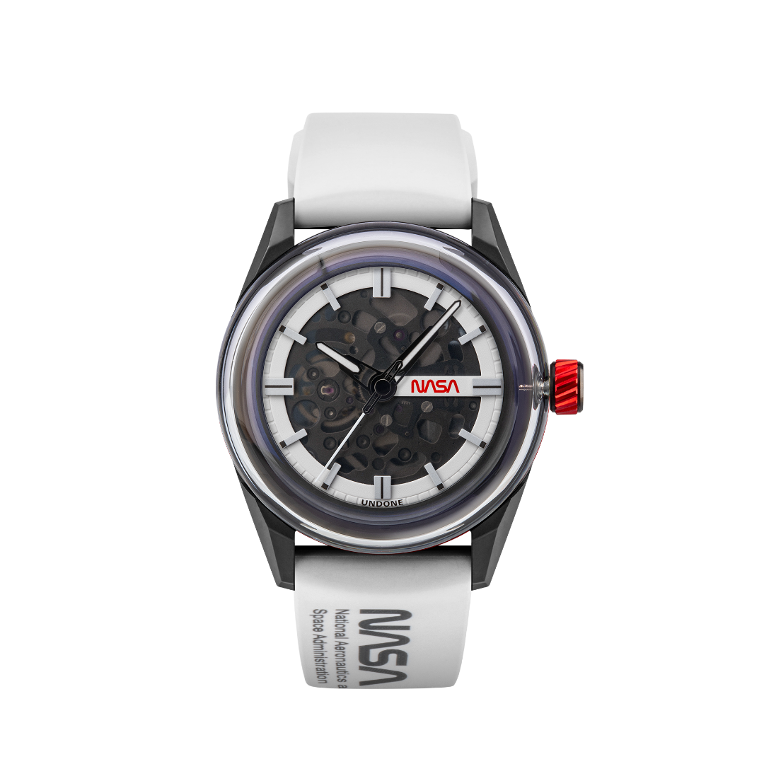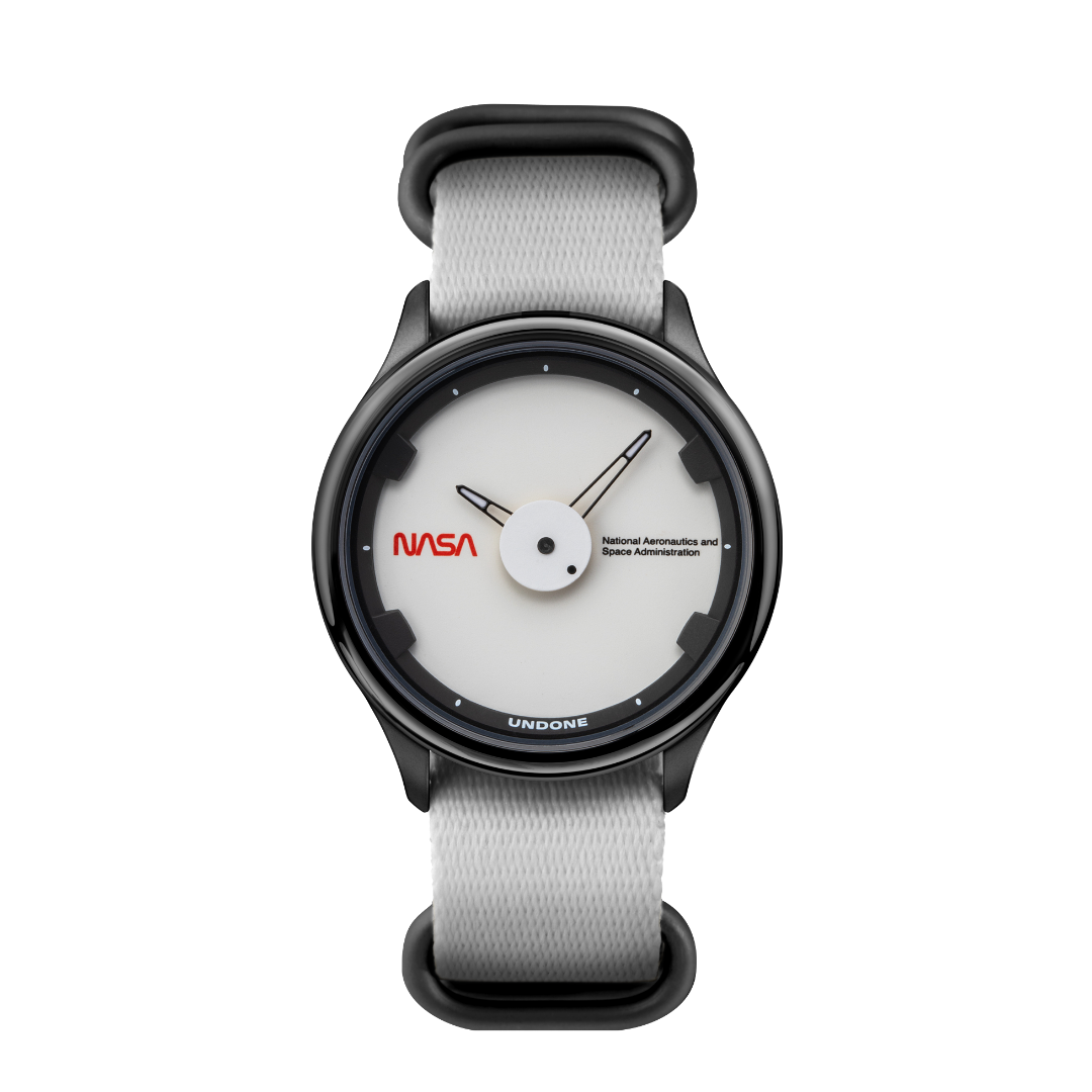 カスタマイズウォッチブランドのUNDONEは、NASAとの初のコラボレーションウォッチを発売します。ホワイトとブラックを基調とした、遊び心と宇宙への高揚感を表現したスペシャルモデル。