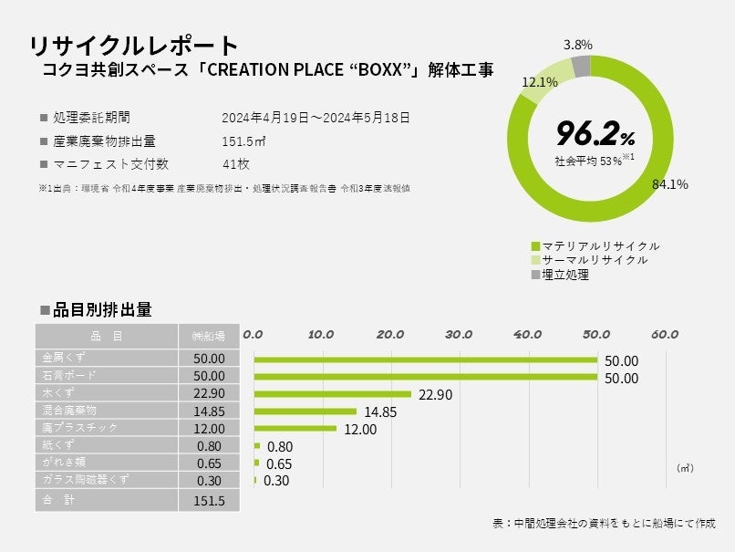 4. 共創スペース“BOXX”の施工で発生する廃棄物のリサイクル率96.2%を達成