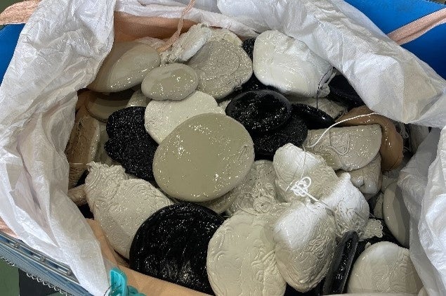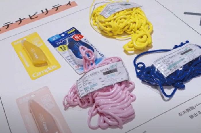 コクヨの企業活動の過程でどのようなものが排出/リサイクルされているかを把握し、使う素材を探すところからプロジェクトを開始しました。コクヨ製品の製造においては、ほとんどのものがリサイクルされていますが、製品の製造過程で、機械の仕様上発生してしまうABS樹脂材のかたまり(通称:樹脂ダンゴ)は、全てをリサイクルするのが難しい状況です。コクヨ社内でも、毎年大量に「樹脂ダンゴ」を排出していることはあまり認知されておらず、これを活かしたプロダクトを作ることで、循環型社会に対する社員の意識向上を目指しました。