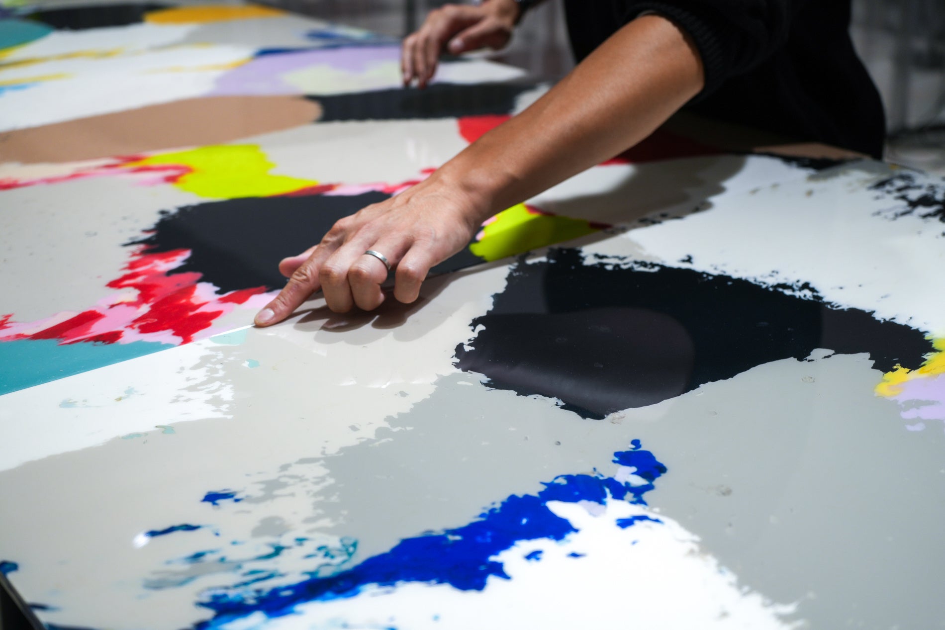 コクヨのものづくりから排出される「樹脂ダンゴ」を色鮮やかなビッグテーブルへ