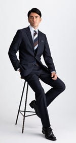 「サークルストレッチ」というタテ、ヨコ、ナナメ360度全ての方向に伸びる素材を採用し、その他ウエストシャーリング、ベスト裏、裾裏も伸びるオールストレッチ仕様で、動きやすい快適なスーツです。