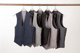 オフィス用のベストから、フォーマル用のショールカラーベストと、バリエーションを充実させていきます。